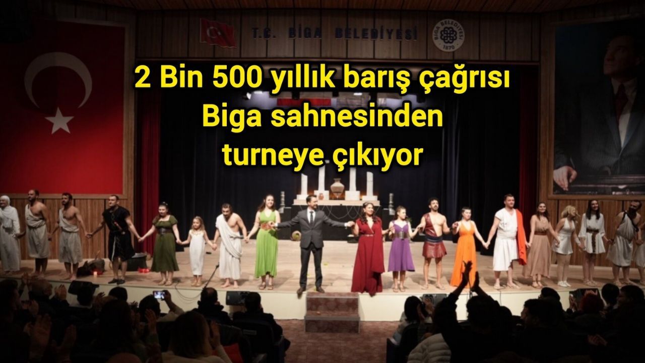 Biga Belediyesi tarafından hayata geçirilen Biga Belediyesi İlçe Tiyatrosu, sahnelediği “Lysistrata – Kadınlar Savaşı” oyunuyla izleyicilerden büyük beğeni topladı. Yönetmenliğini Murat Gülcen’in üstlendiği oyun, 2 bin 500 yıllık barış çağrısını Biga’dan başlayarak Türkiye’nin dört bir yanına taşımaya hazırlanıyor.