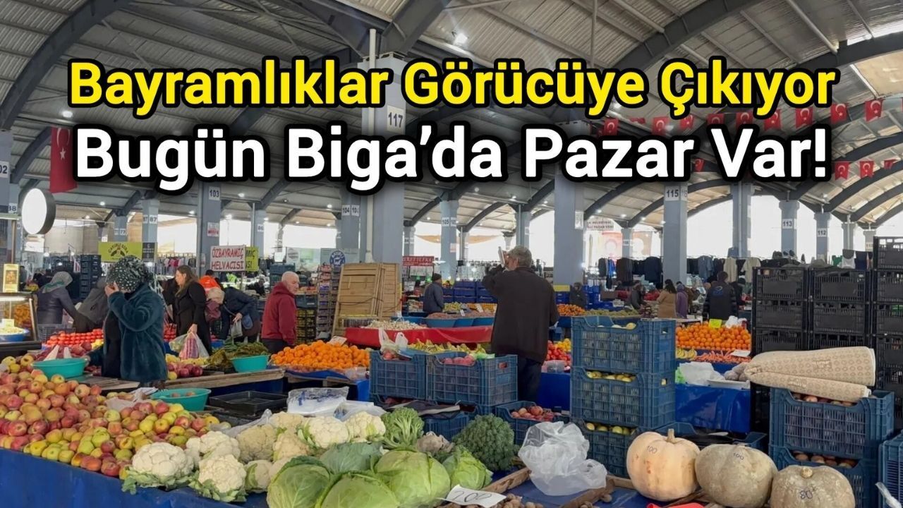 Biga Belediyesi Kapalı Pazar Yeri'nde kurulan pazar, 19 Mart 2026 Perşembe günü bugün tüm gün hizmet verecek. Bayramlık ikramlardan taze sebze meyveye, giyimden şarküteri ürünlerine kadar tüm ihtiyaçların karşılanabileceği pazar alanında, belediye ekipleri de huzurlu bir alışveriş ortamı için görev başında olacak.