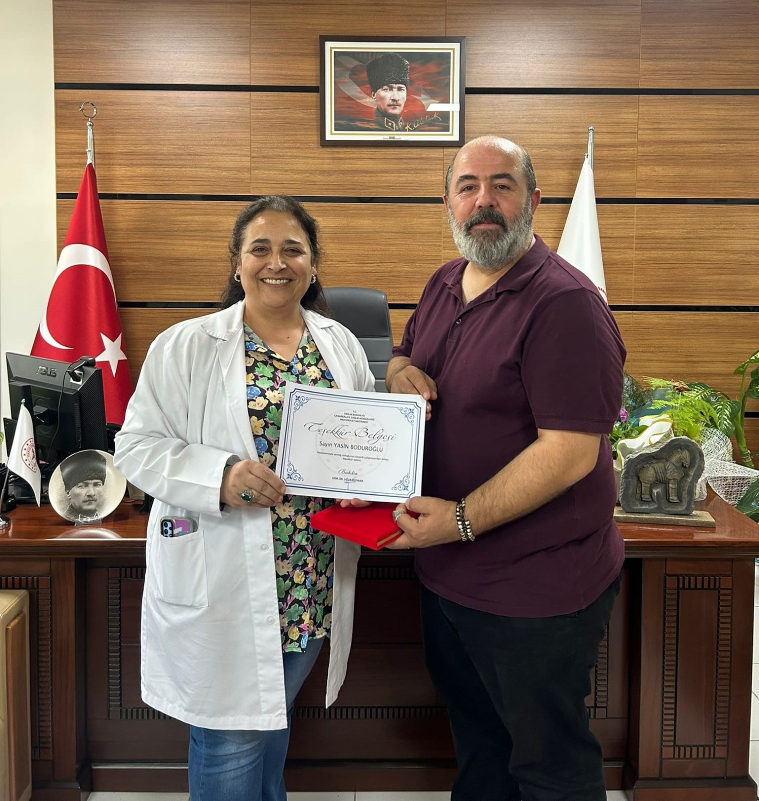 Hastanede önemli çalışmalara imza atan ve değerli katkılarda bulunan Yasin Boduroğlu, idarecilik görevinin sona ermesiyle birlikte Laboratuvar Teknisyeni olarak görevine hastanede devam edecek.