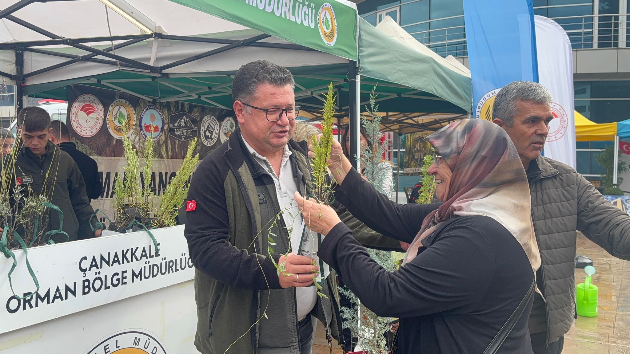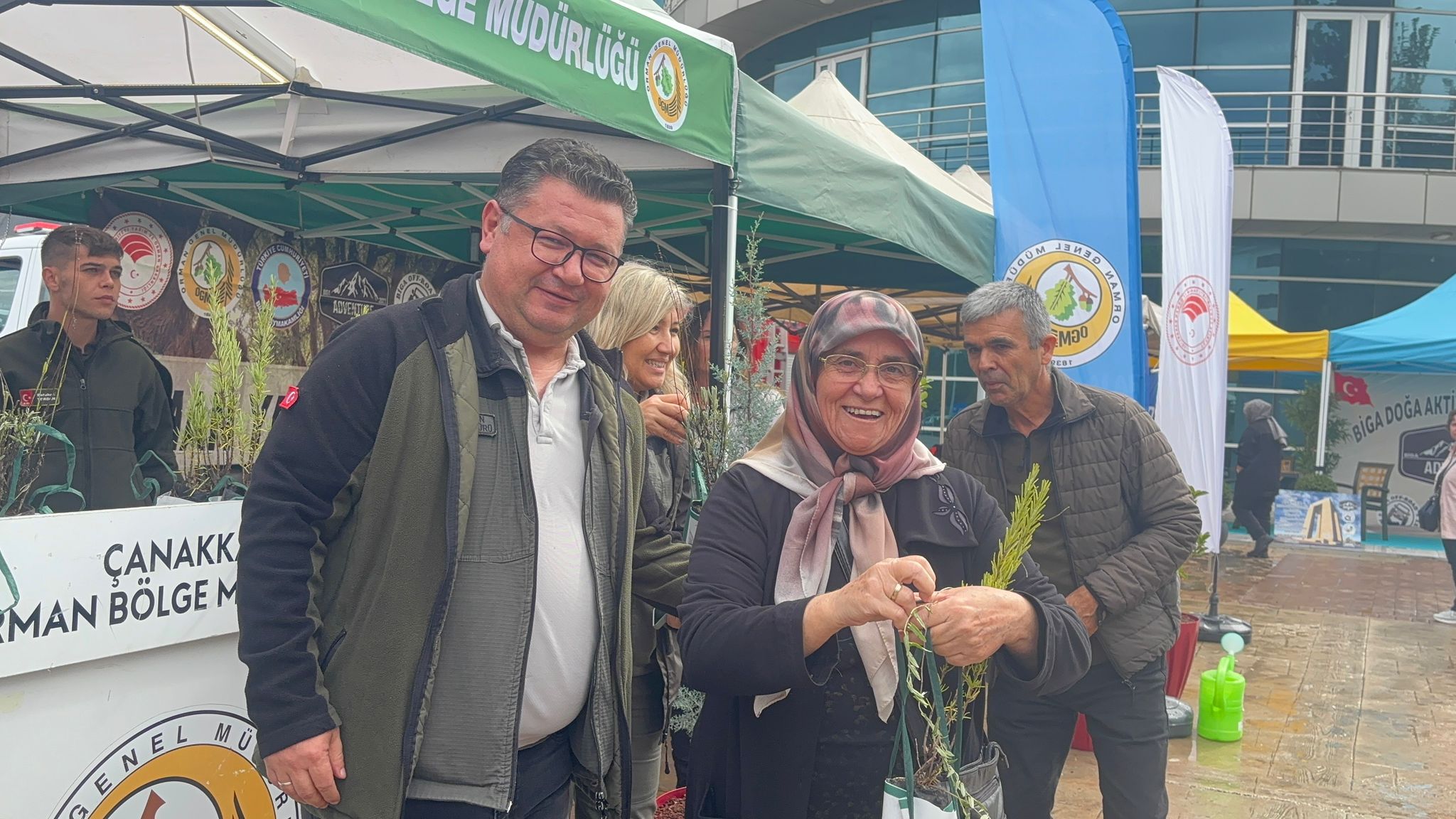Fidan dağıtımına katılan Biga Orman İşletme Müdürü Semih Aydın da vatandaşlara bizzat fidan dağıtarak doğaya katkı çağrısında bulundu.