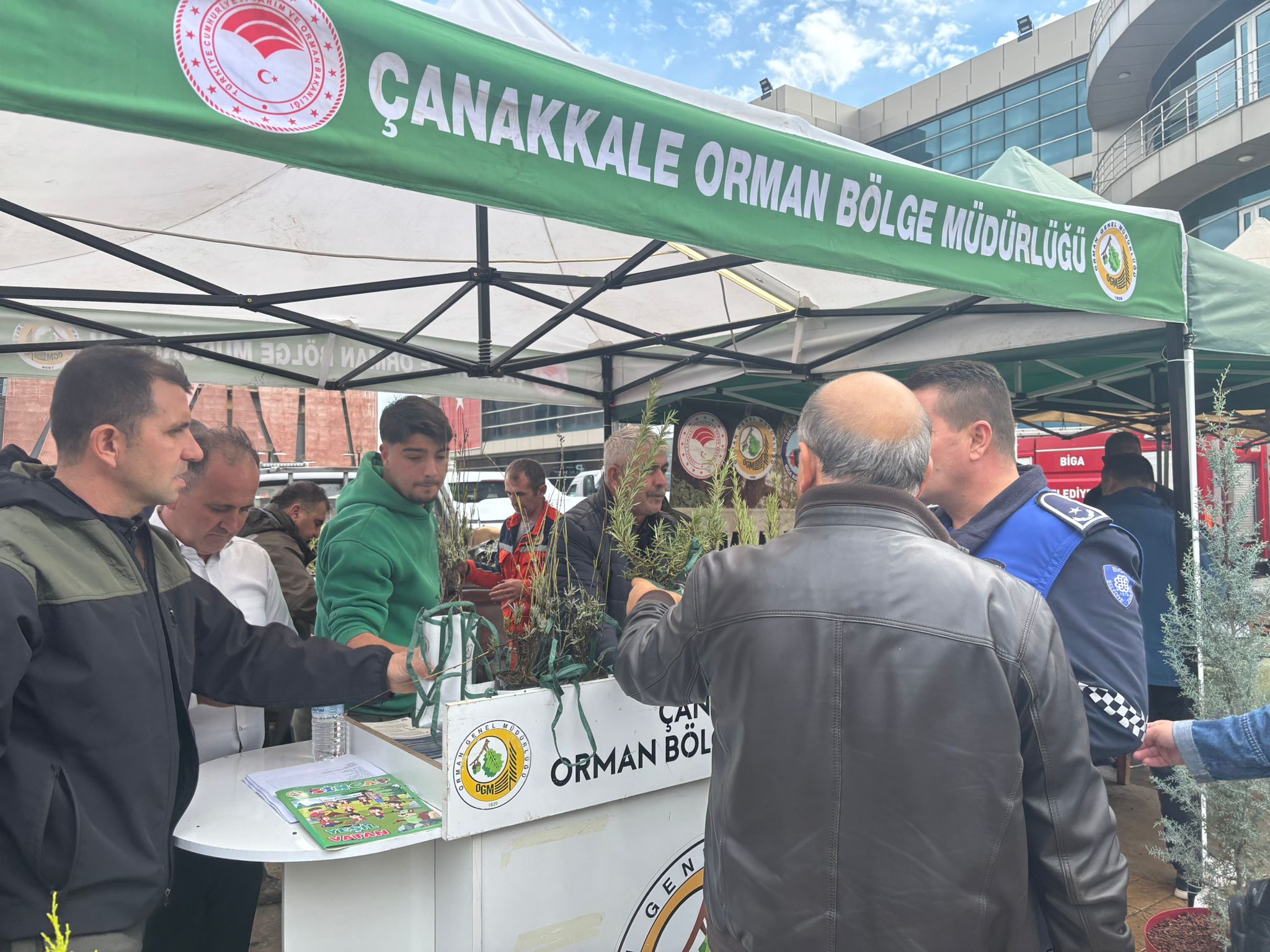 Biga Orman İşletme Müdürlüğü, Biga Belediyesi önünde vatandaşlara biberiye ve lavanta fidanı dağıttı. Üç gün boyunca sürecek etkinlikte toplam 1500 fidanın Bigalılarla buluşturulacağı açıklandı.