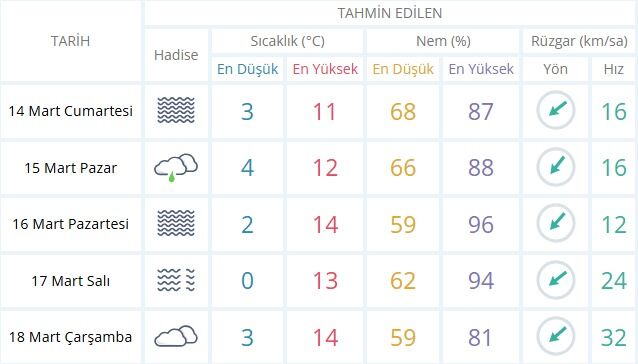 Özellikle 17 Mart Salı günü gece sıcaklığının 0 dereceye kadar düşmesi bekleniyor. Tarımla uğraşan vatandaşlarımızın ve üreticilerimizin hafif don riskine karşı tedbirli olmaları önem arz ediyor. Gündüz sıcaklıkları ise hafta ortasına doğru 14 dereceye kadar tırmanacak.