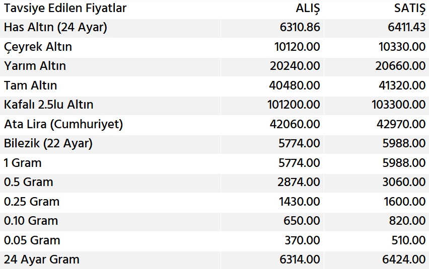 • Çeyrek Altın: 10.330 TL
