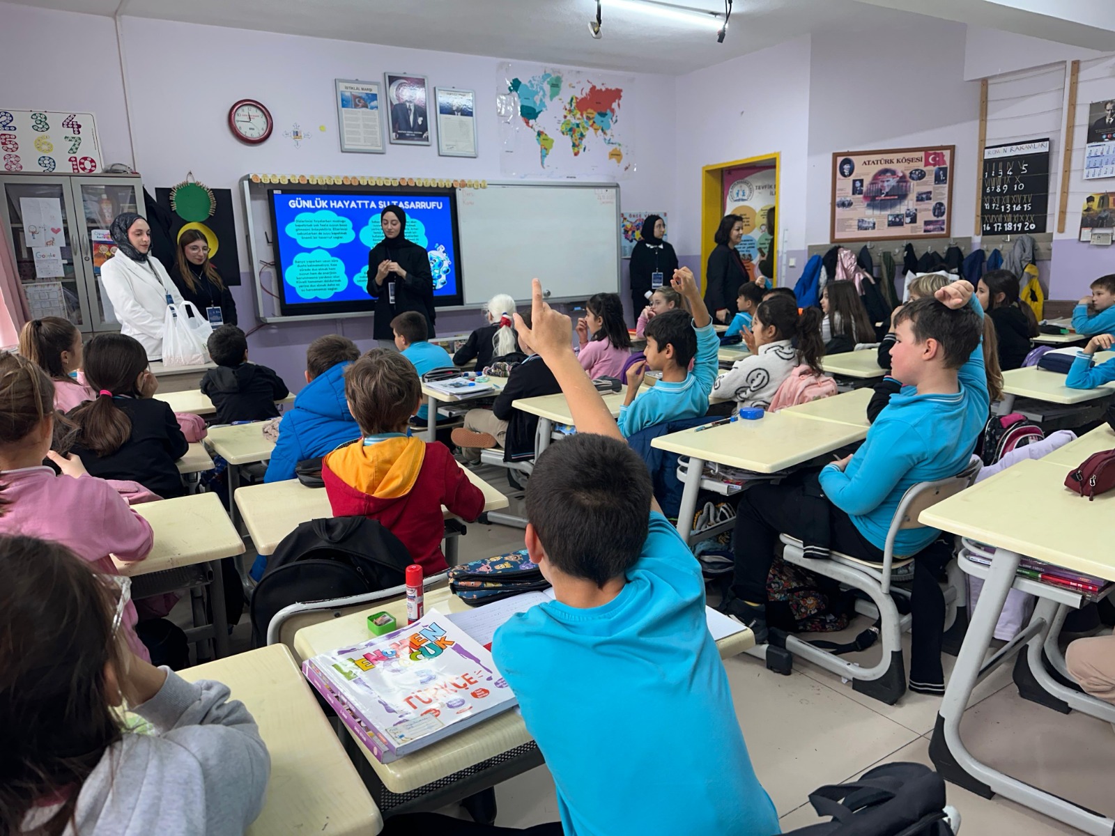 Oyunlar, soru-cevap seansları ve uygulamalı çalışmalarla desteklenen programda, minik öğrencilerin su tasarrufu konusundaki heyecanı ve ilgisi dikkat çekti.
