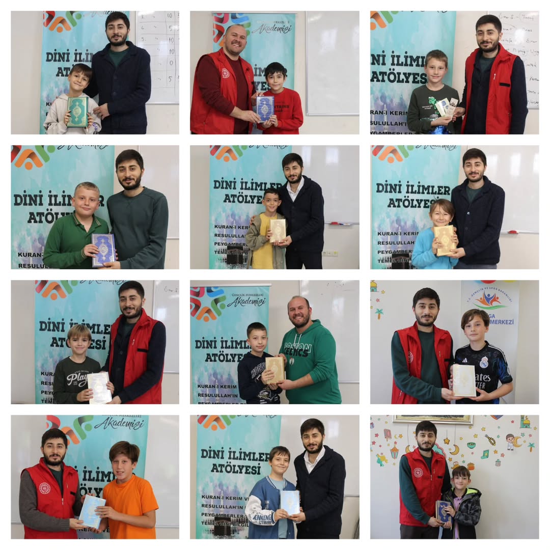 Gençlik Merkezi bünyesinde faaliyet gösteren Dini İlimler Atölyesi okul dönemi eğitimleri kapsamında, Kur’an-ı Kerim okumaya geçen gençlere anlamlı bir hediye takdim edildi. “Hediyelerin en güzeli Kur’an-ı Kerim” anlayışıyla gerçekleştirilen programda, gençlerin heyecanı ve mutluluğu yüzlerinden okundu.