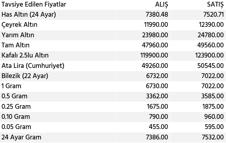 Saflık derecesi en yüksek olan Has Altın (24 Ayar), satışta 7.520 TL bandını aşarak dikkatleri üzerine çekti. Gram bazında küçük yatırımcıya hitap eden seçeneklerde ise rakamlar şu şekilde şekillendi:
