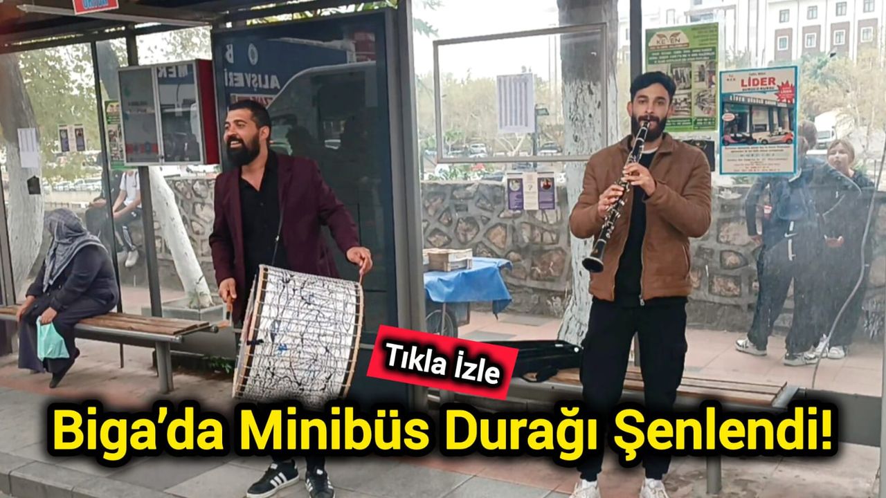 Biga’nın sevilen isimleri Sami Şeflek ve Eren Kuşgöz, asker uğurlamak için Biga Otobüs Terminali’ne gitmek üzere minibüs durağında beklerken adeta şenlik havası yarattı.