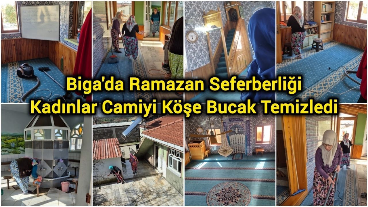 Biga’ya bağlı Bozlar Köyü’nde yaklaşan Ramazan ayı öncesi köyün kadınları örnek bir dayanışmaya imza attı. Köy camisinde bir araya gelen kadınlar, camiyi köşe bucak temizleyerek ibadete hazır hale getirdi.