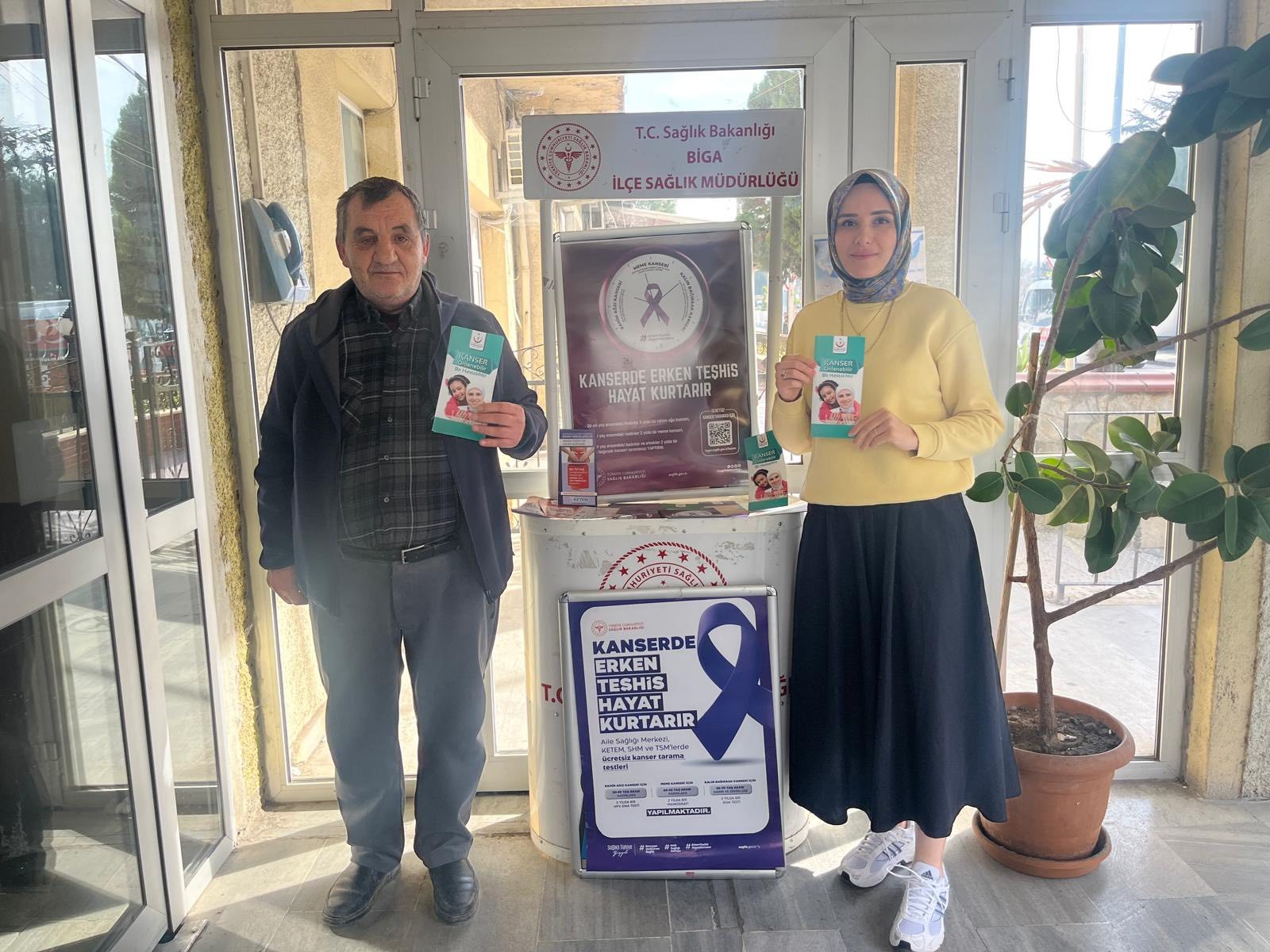 4 Şubat Dünya Kanser Günü kapsamında Biga İlçe Sağlık Müdürlüğü, ilçe merkezi ve köylerde geniş kapsamlı bir farkındalık çalışması gerçekleştirdi. Halk Sağlığı Uzmanı Dr. Duran Buran ve sağlık ekipleri, vatandaşları kansere karşı bilgilendirdi.