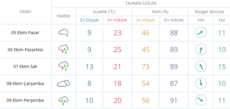 Hafta ortasına gelindiğinde ise yağmura kısa bir mola verilecek. Çarşamba günü havanın parçalı bulutlu olması beklenirken, yağışlar Perşembe günü itibarıyla yeniden başlayarak bölgeyi sulamaya devam edecek.