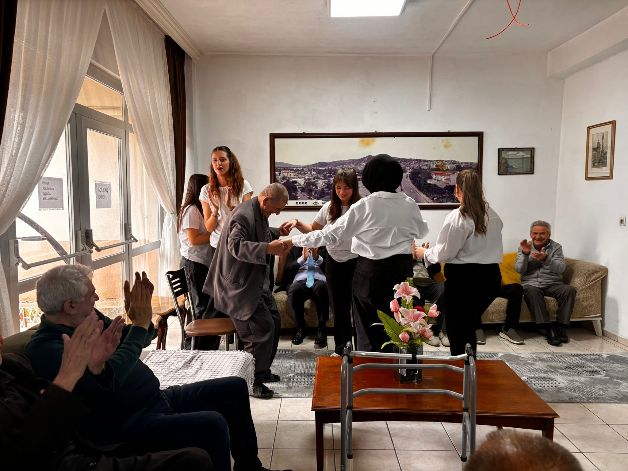 Selime Bayar yönetiminde hazırlanan programda öğrenciler; huzurevi sakinlerine fıkralar anlattı, şiirler okudu ve hep birlikte eski şarkıları seslendirdi. Sohbetlerin samimiyetiyle huzurevinde neşeli bir atmosfer oluşurken, yaşlı bireylerin sosyal hayata katılımı noktasında önemli bir adım atıldı.