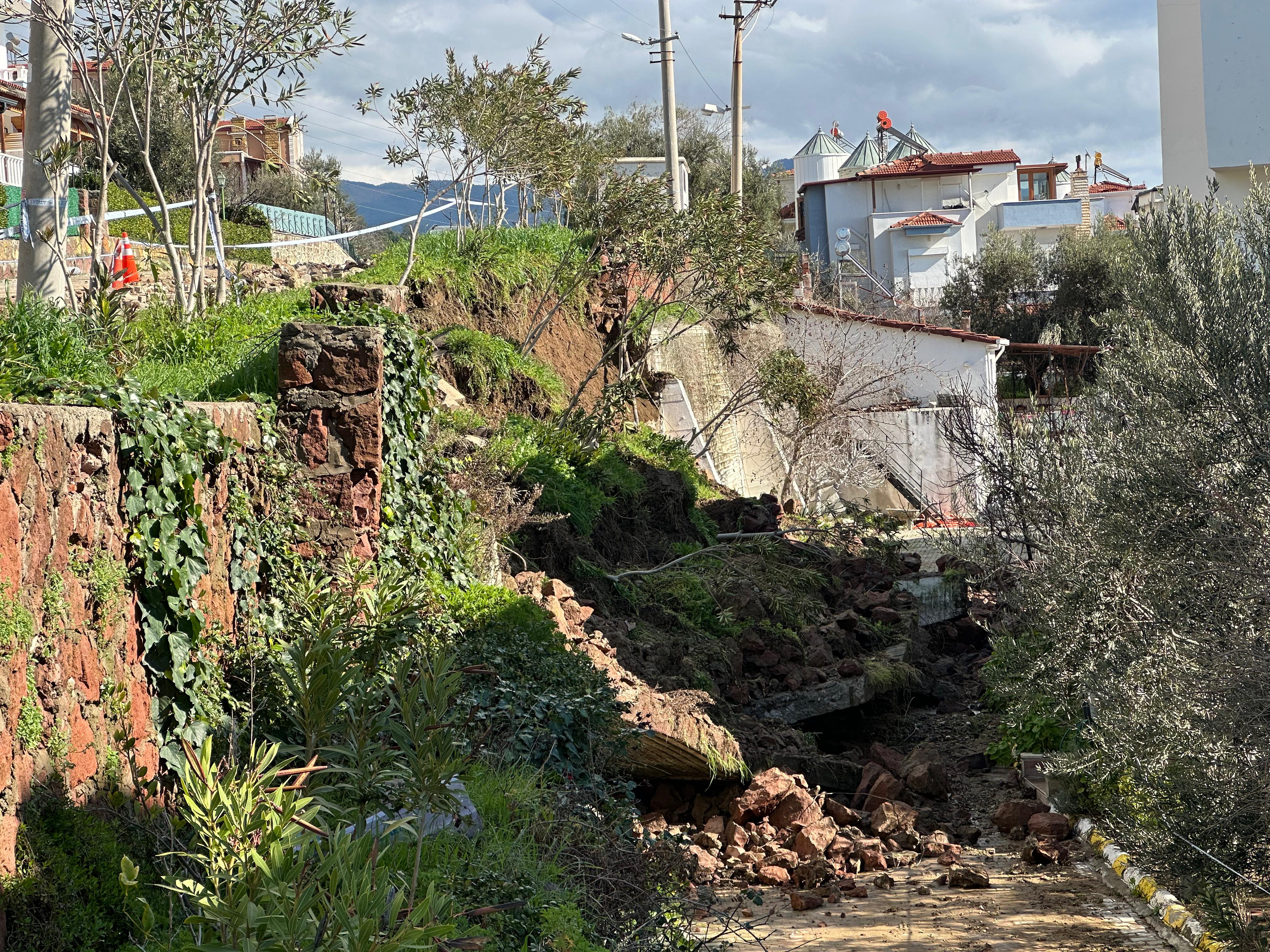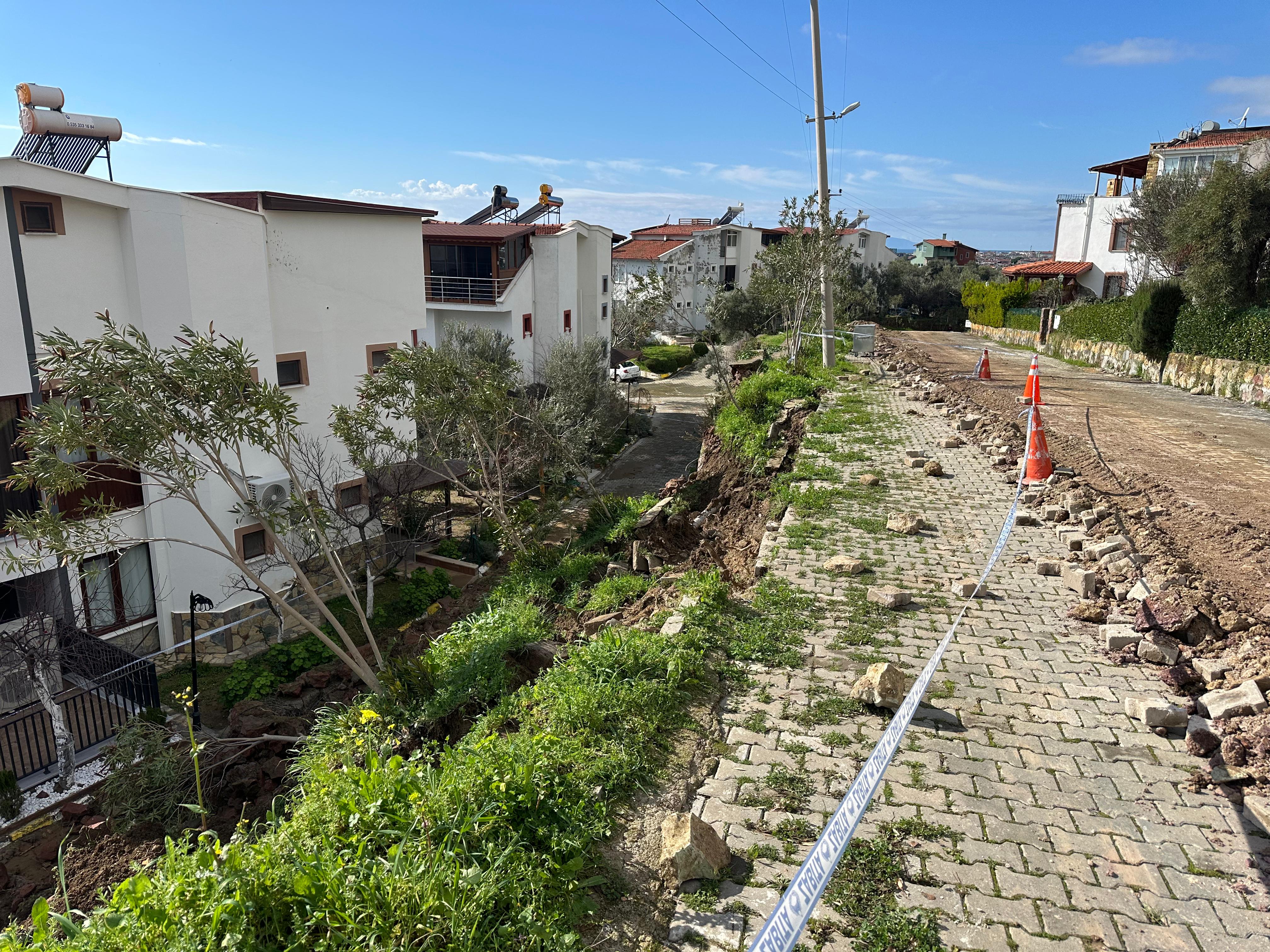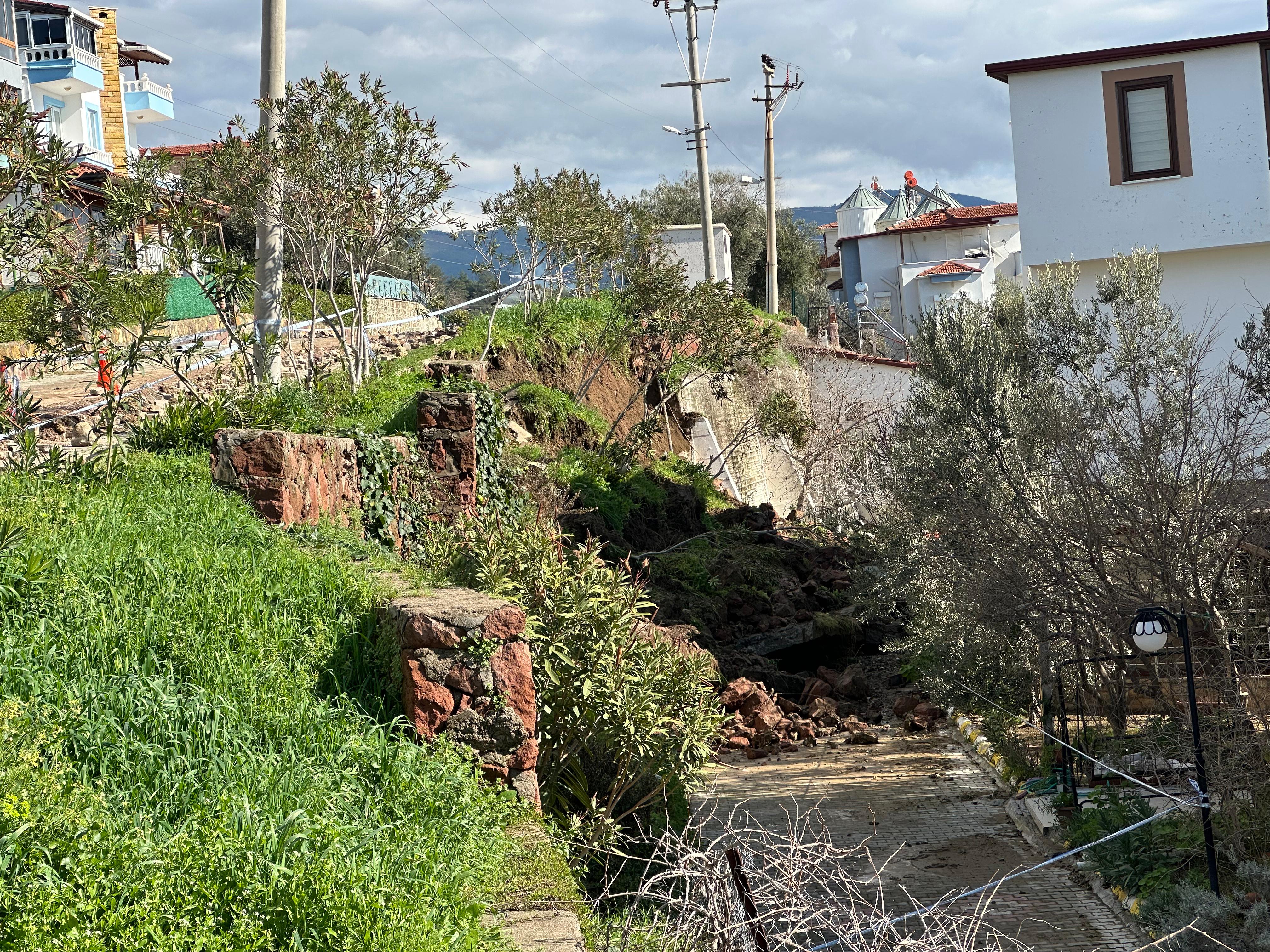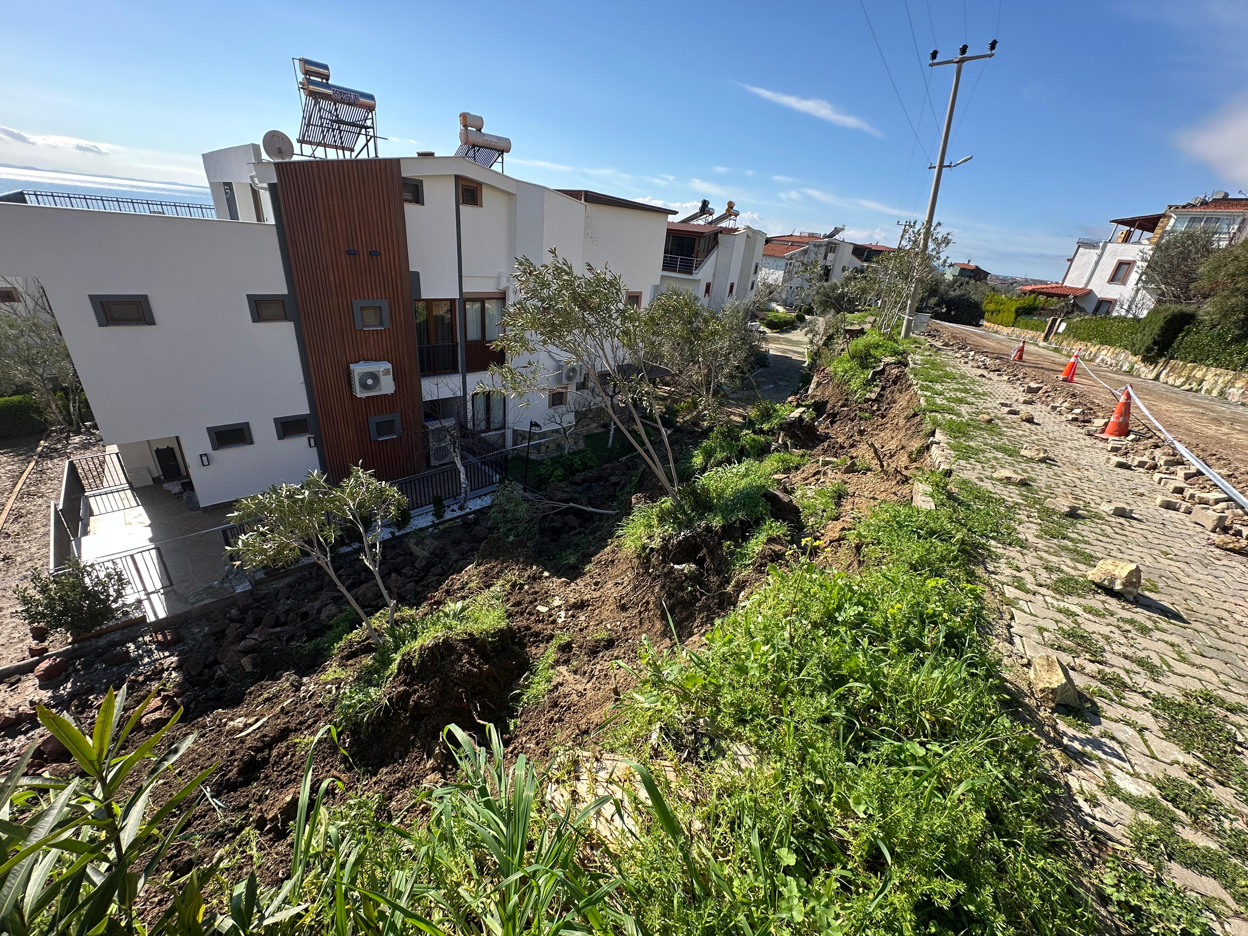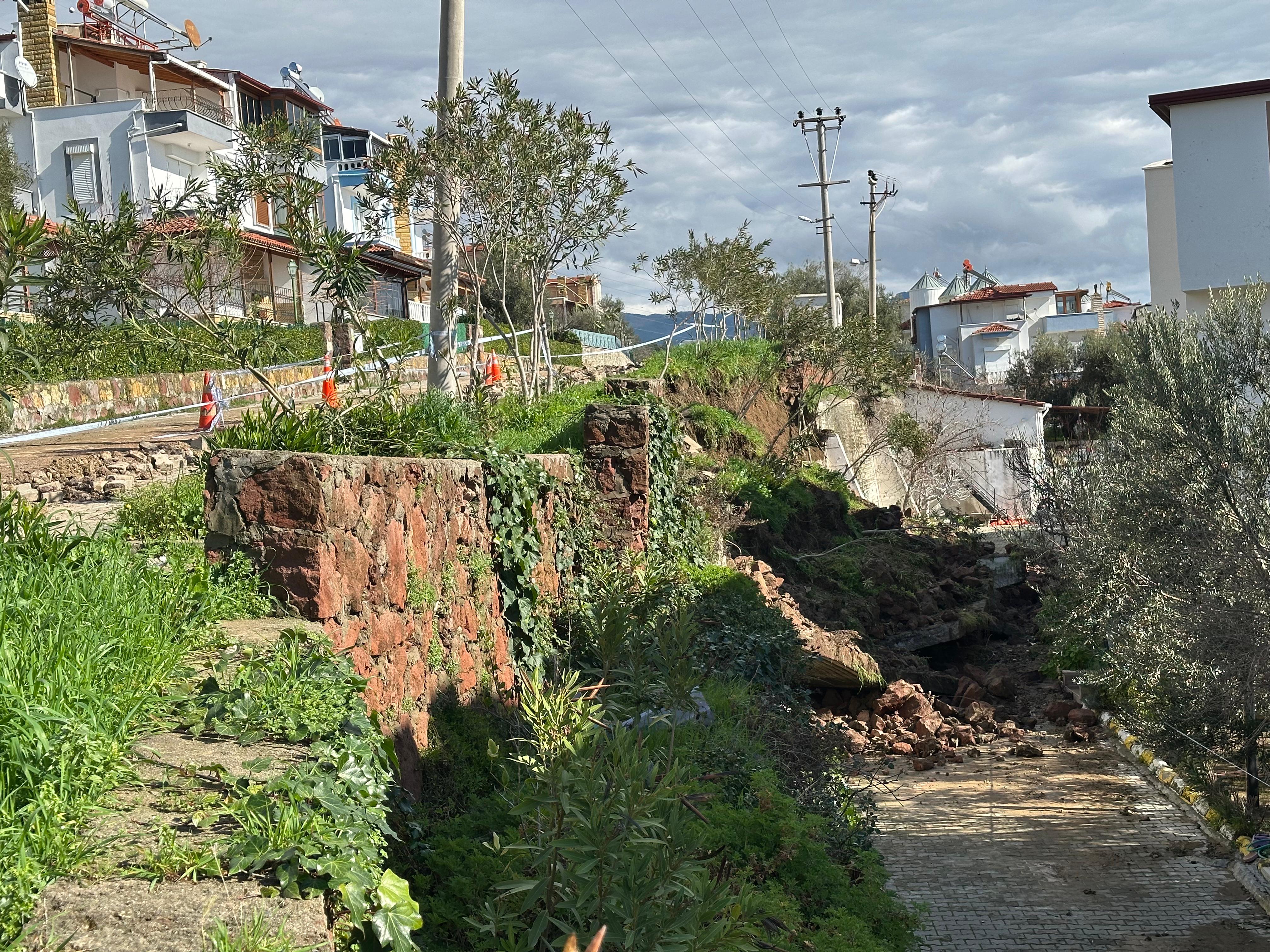 Çanakkale'nin Ayvacık ilçesinde bir sitenin istinat duvarı çöktü.