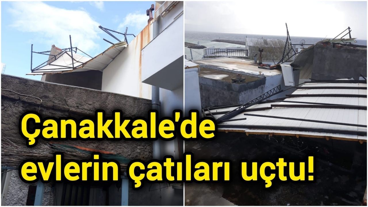 Çanakkale'nin Ayvacık ilçesinde etkili olan kuvvetli fırtına nedeniyle bazı evlerin çatıları uçtu.