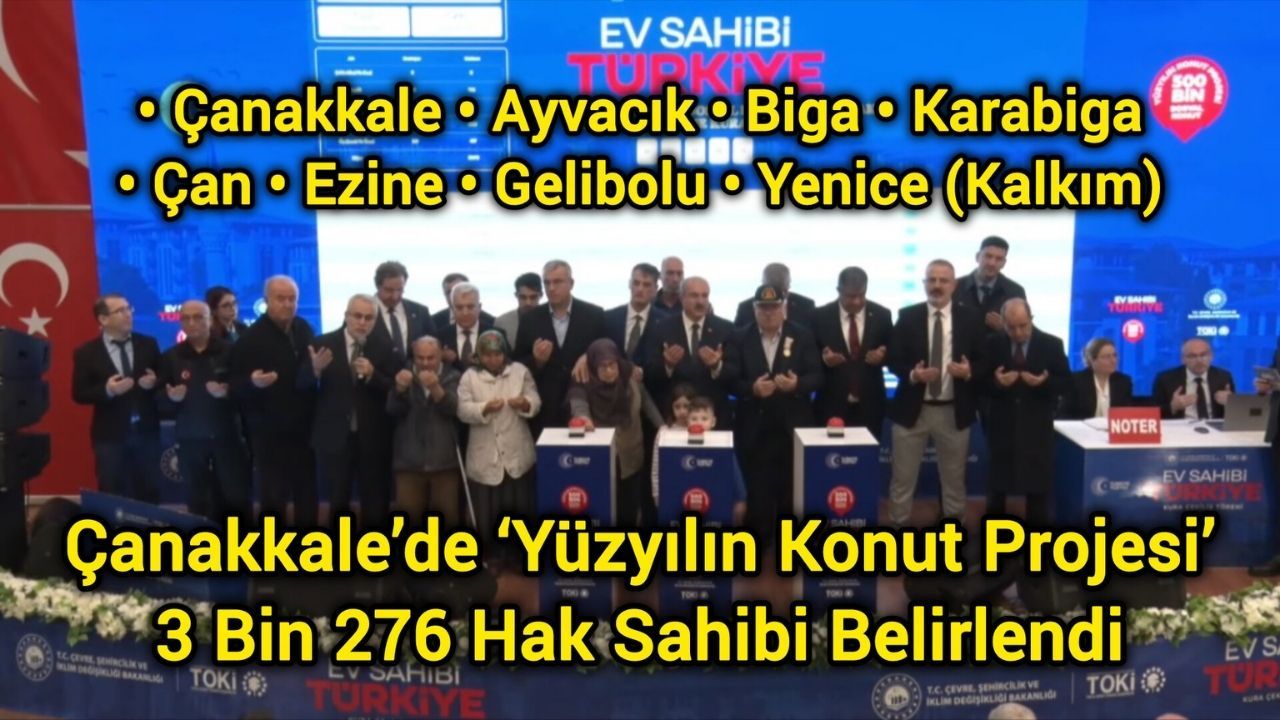 Konut projesine Çanakkale merkez başta olmak üzere Ayvacık, Biga, Çan, Ezine, Gelibolu ve Yenice ilçelerinde toplam 29 bin 800 vatandaşın başvuruda bulunduğunu bildiren Kuşçu, "Noterimizin huzurunda, sizlerin huzurunda bu talepler için 3 bin 276 ailemizi belirleyeceğiz. Hak sahibi olacak vatandaşlarımıza şimdiden hayırlı olmasını diler, sağlık, huzur ve güven içerisinde yaşayacakları sıcak yuvalar inşa edeceğimizi müjdelemek isterim." ifadelerini kullandı.