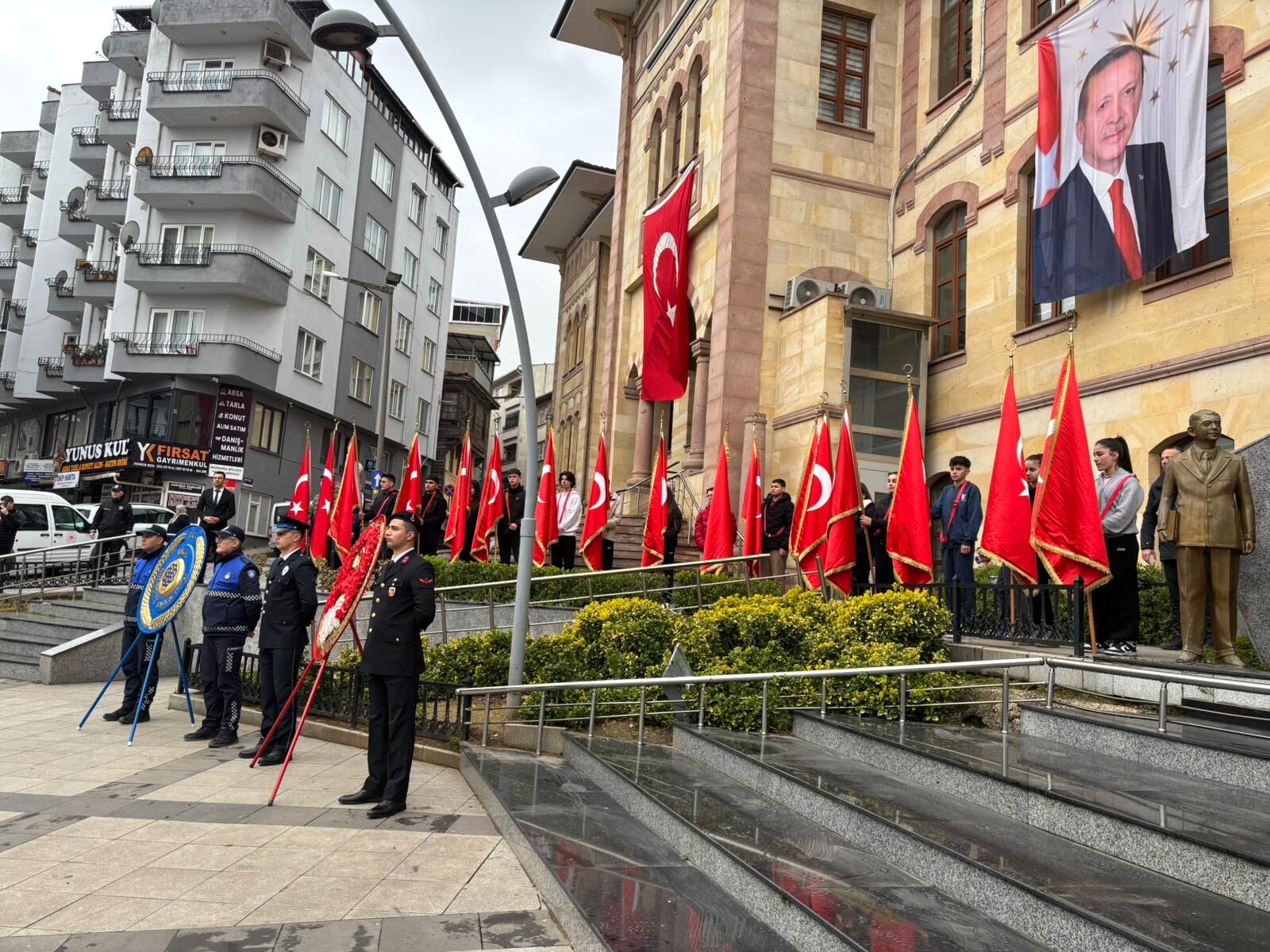 Program, Biga Kaymakamlığı ve Biga Belediyesi tarafından Atatürk Anıtı’na çelenk sunulmasıyla başladı. Ardından saygı duruşunda bulunuldu ve İstiklal Marşı okundu.