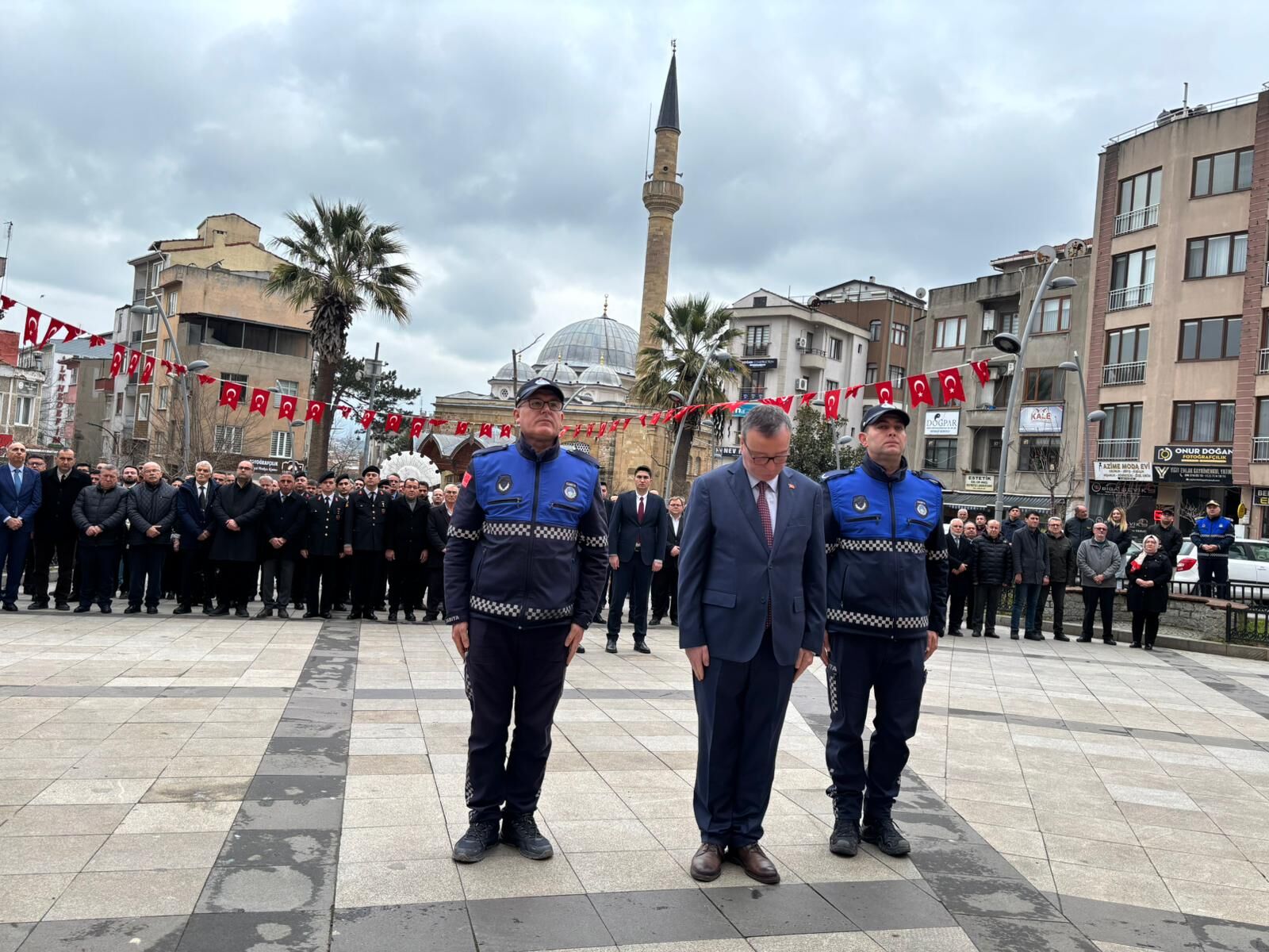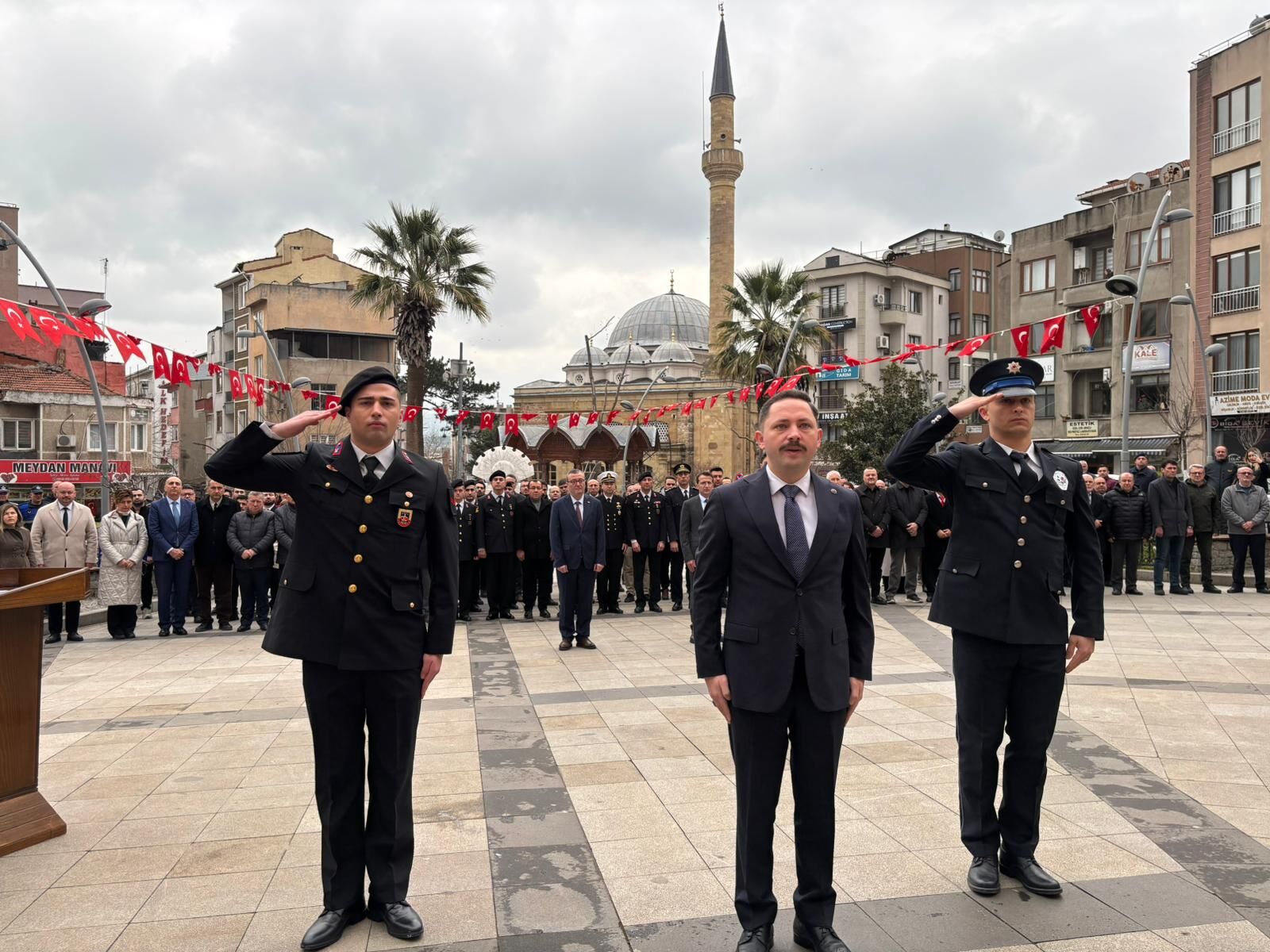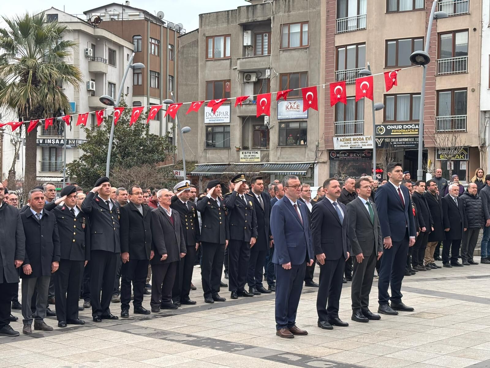 Biga Hükümet Meydanı’nda saat 10.30’da başlayan resmi çelenk sunma törenine yoğun katılım oldu.