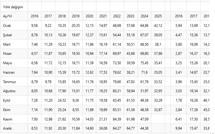 TÜFE ve Yİ-ÜFE oranları şöyle: