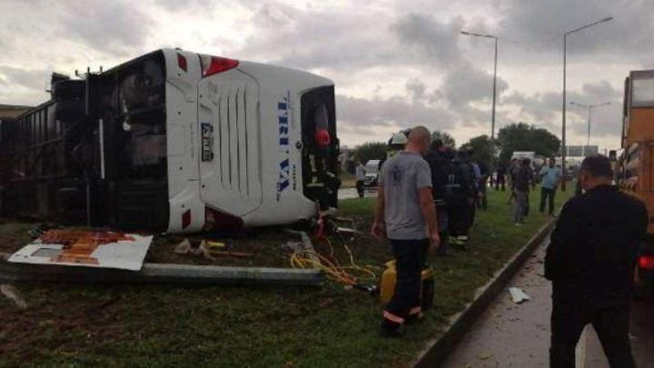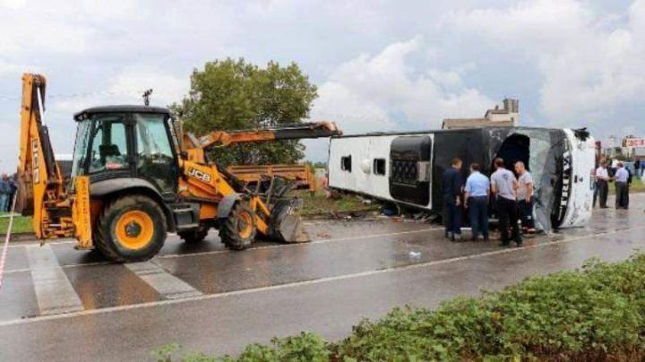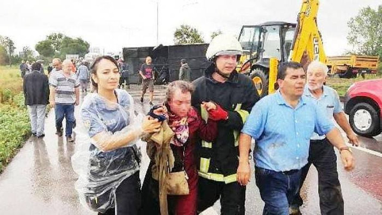 BİGA'DA YOLCU OTOBÜSÜ DEVRİLDİ: 1 ÖLÜ, 28 YARALI