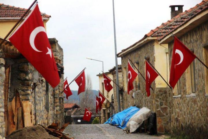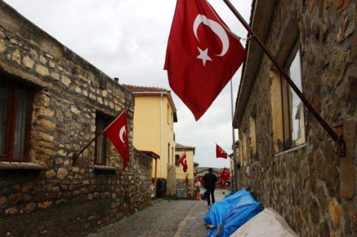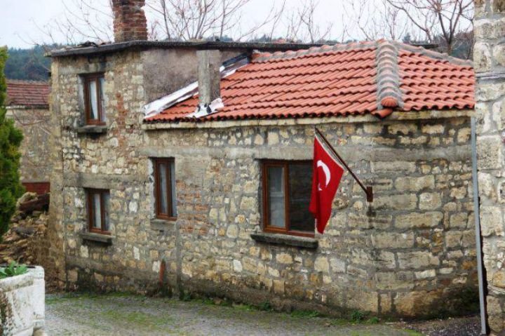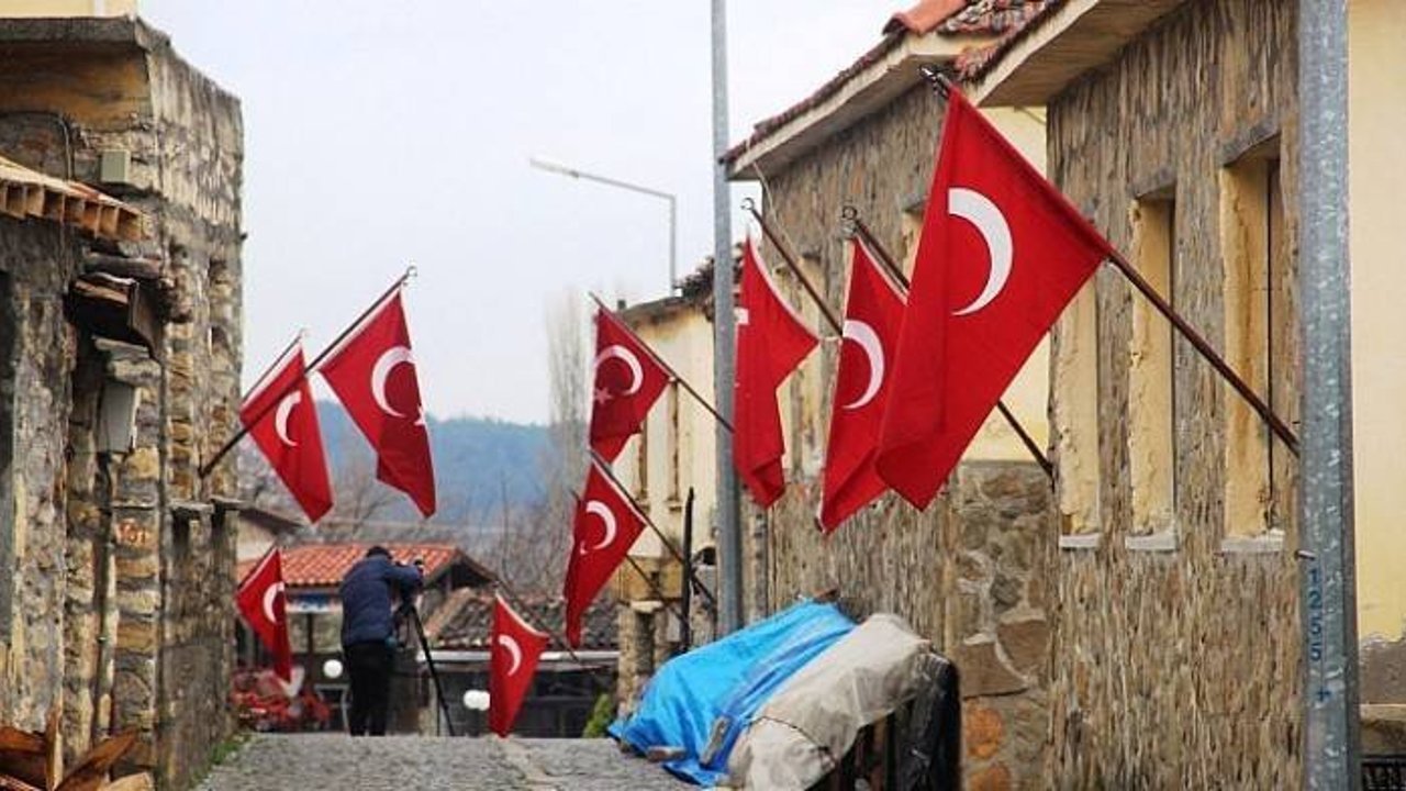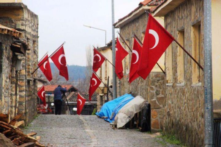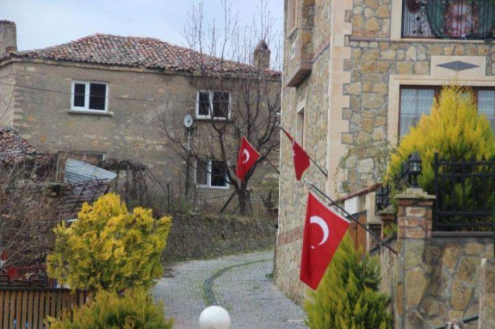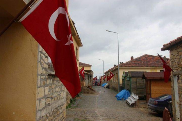 Eceabat'a bağlı 70 haneli Bigalı köyünde, her evin duvarında Türk bayrakları dalgalanıyor.
