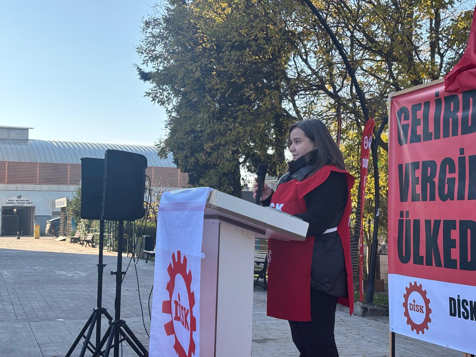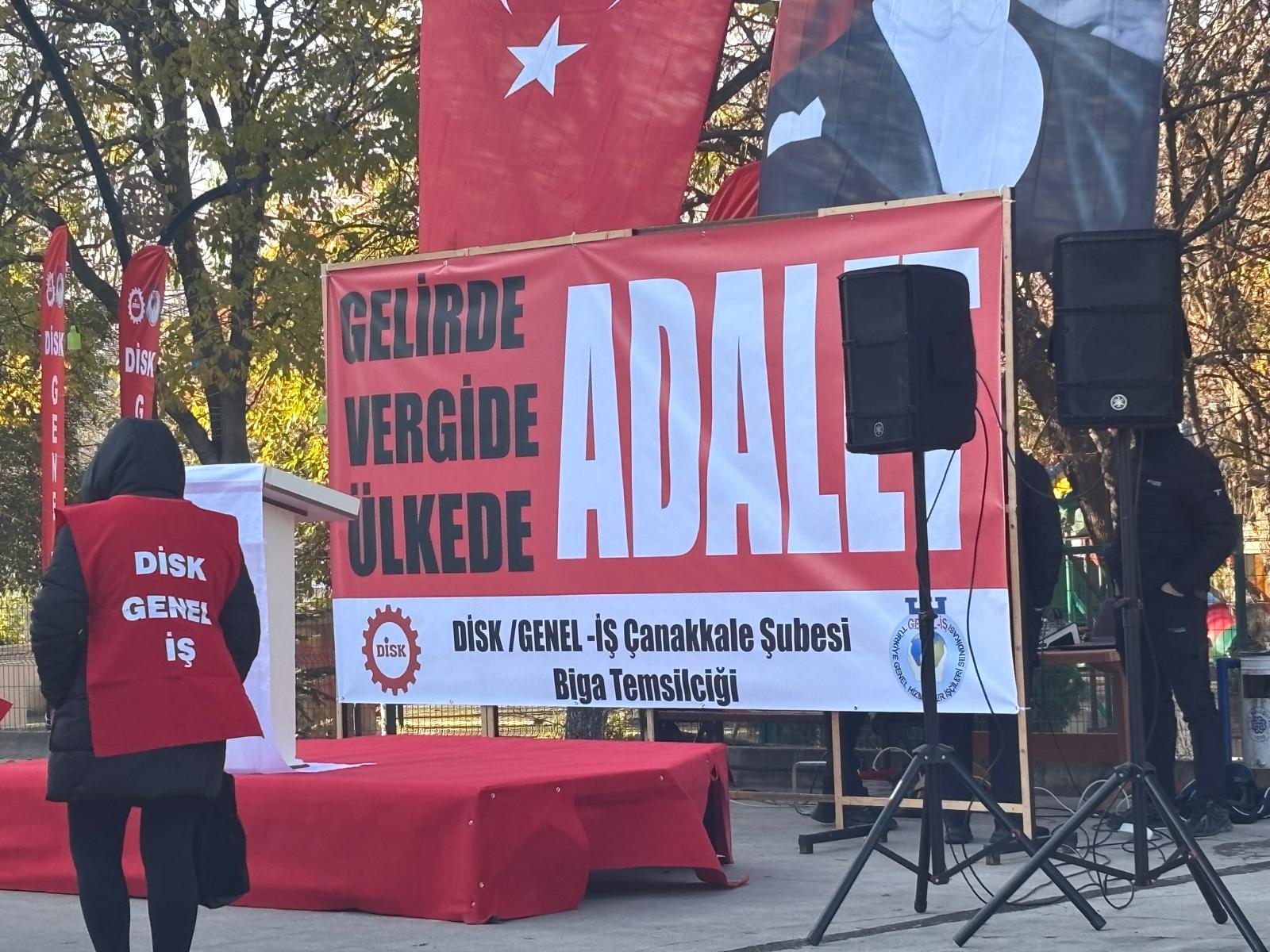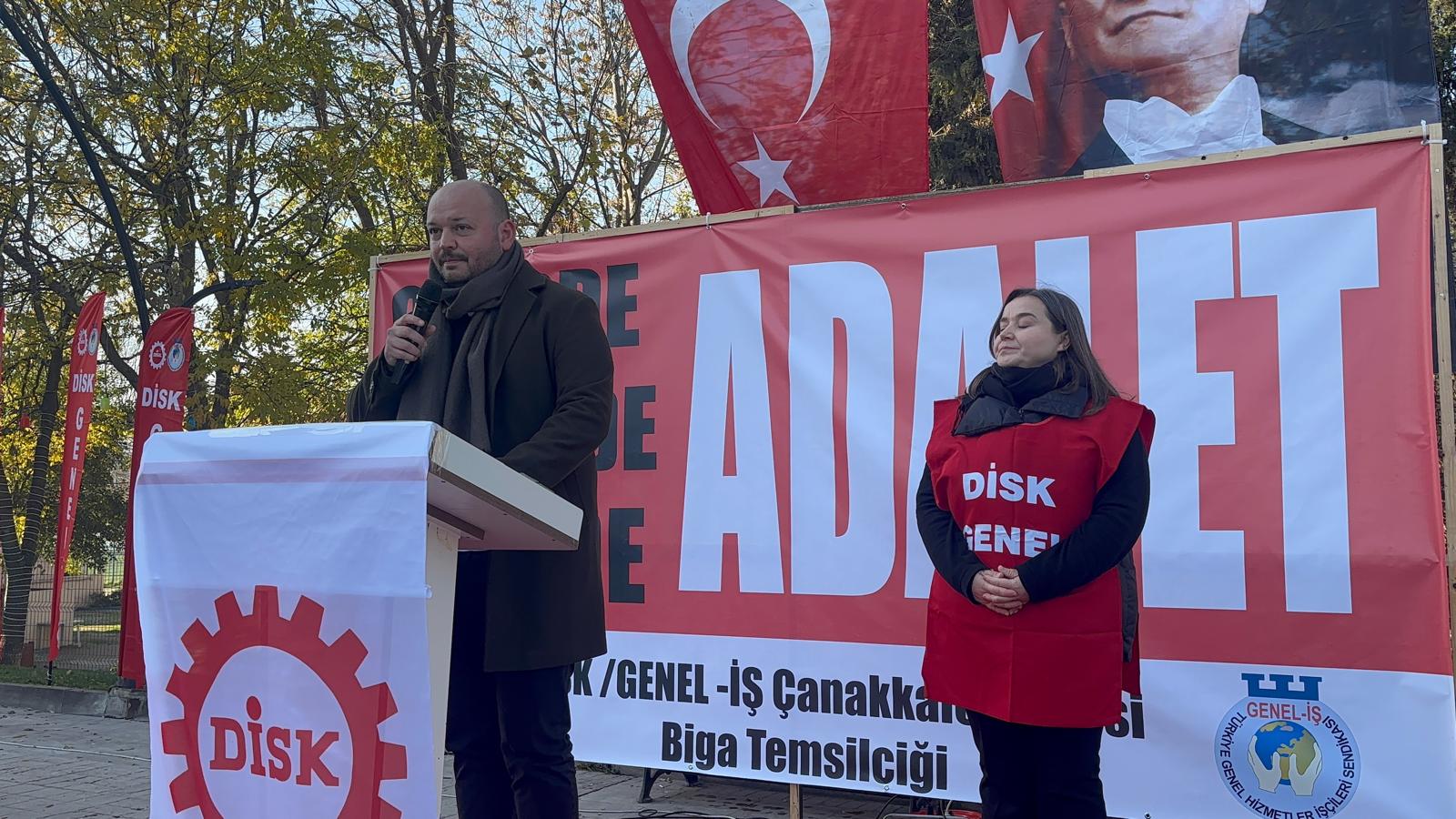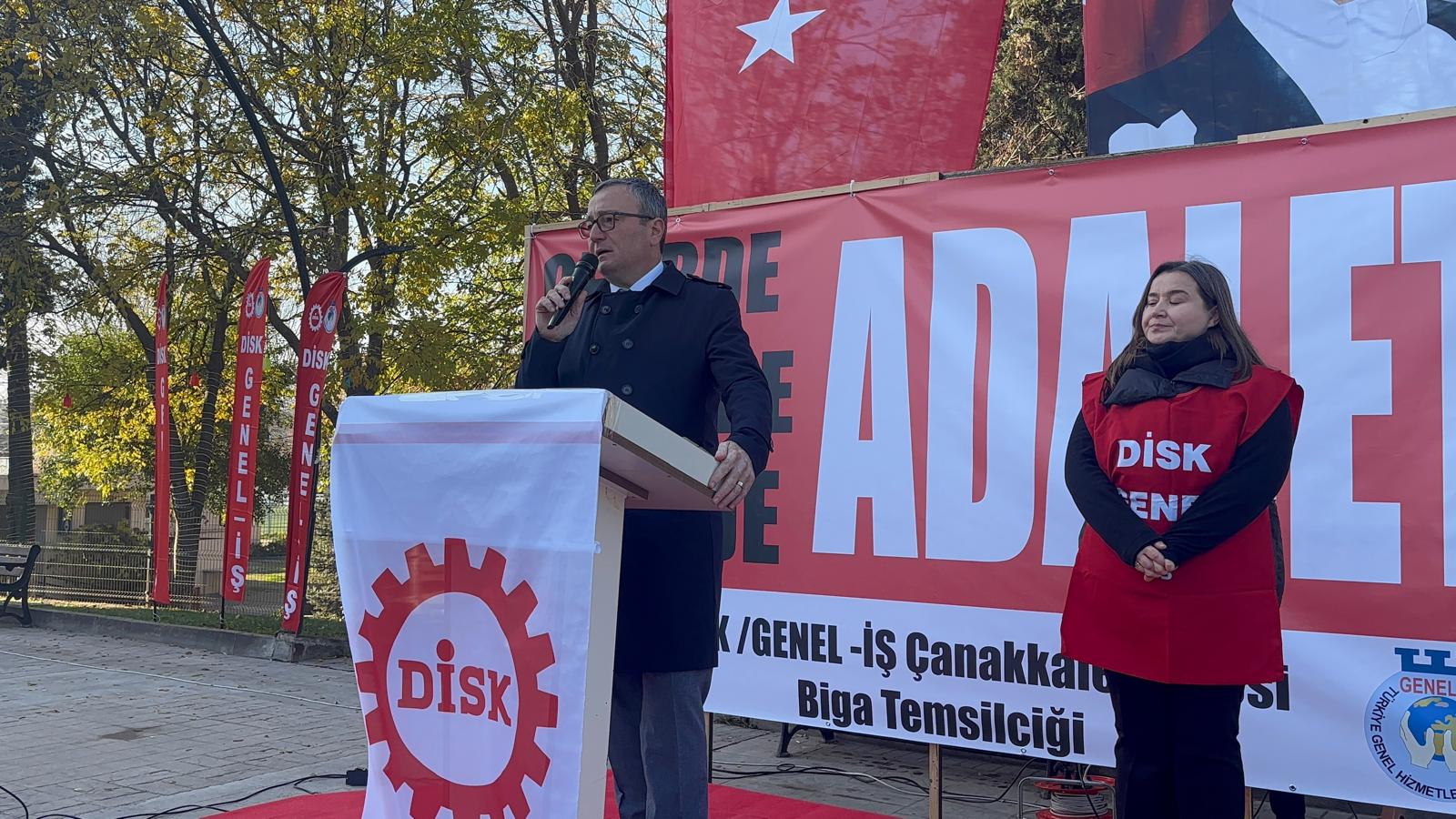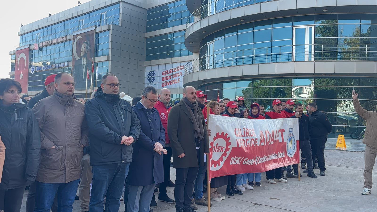 Devrimci İşçi Sendikaları Konfederasyonu (DİSK), “vergide adalet, gelirde adalet” sloganlarıyla Biga Belediye Meydanı’nda geniş katılımlı bir basın açıklaması gerçekleştirdi.