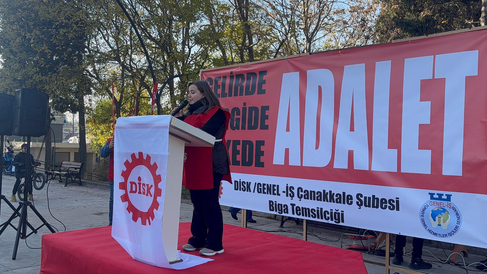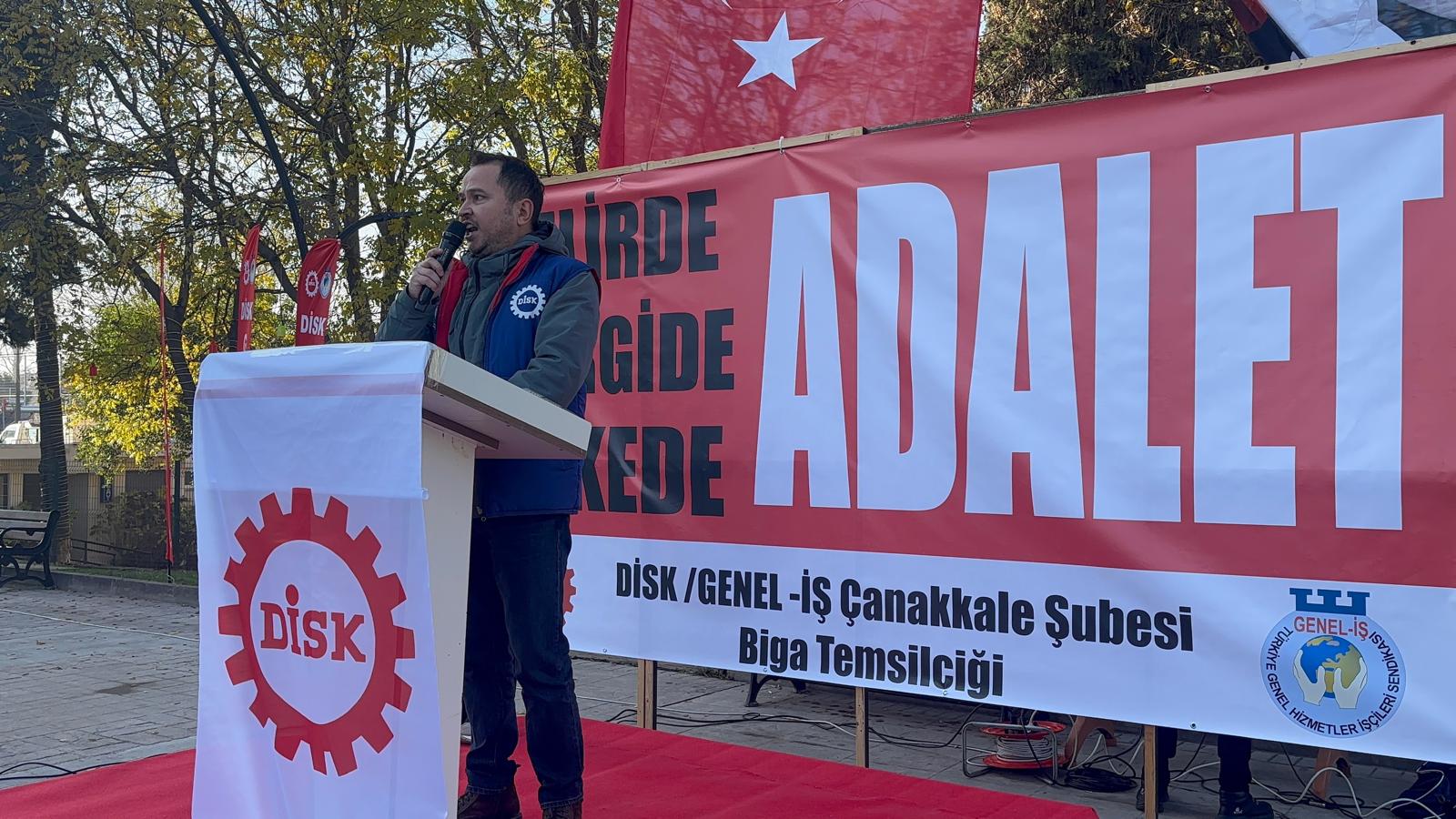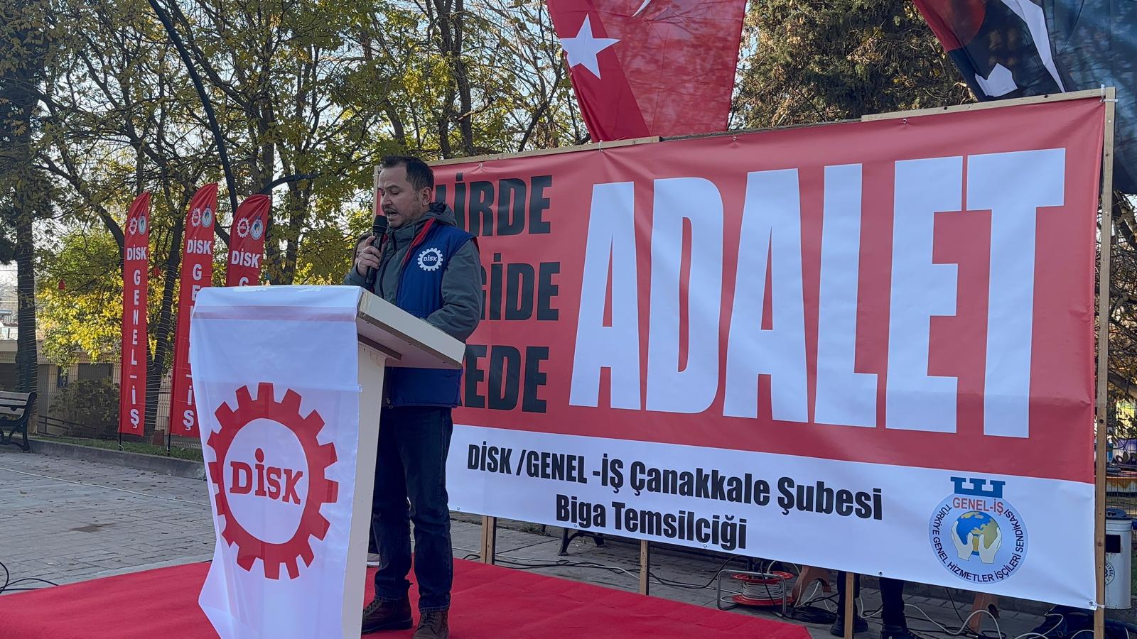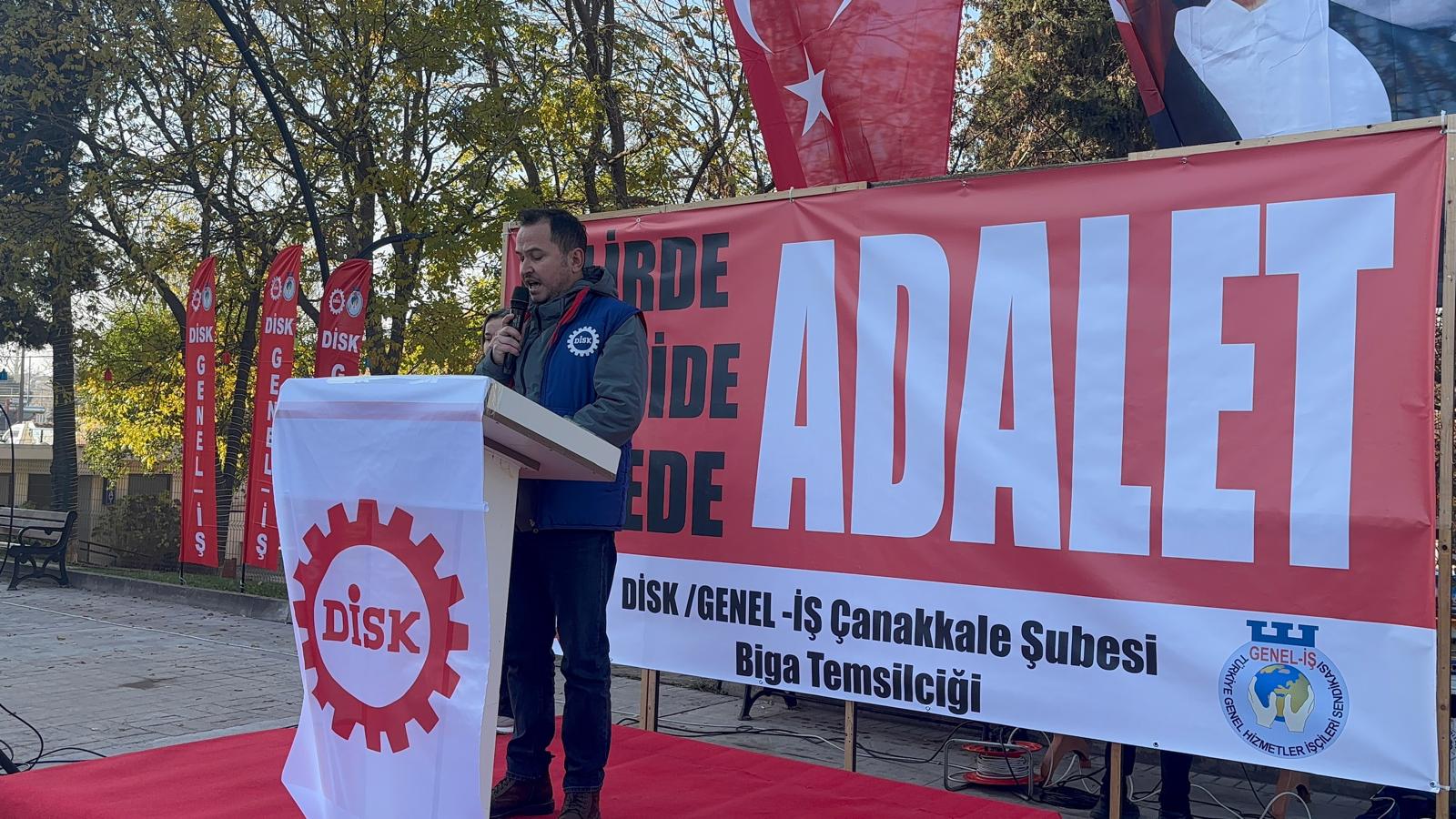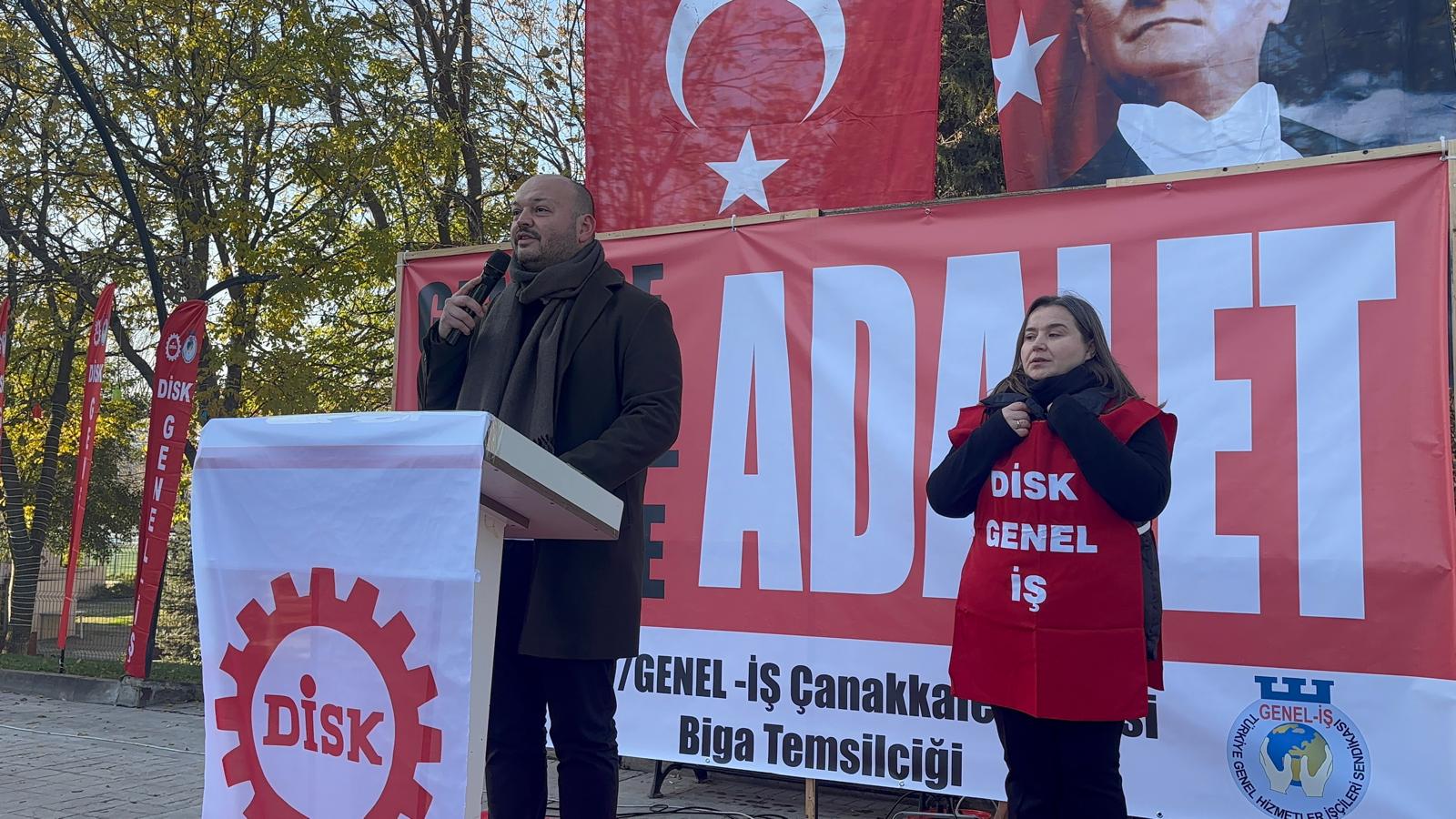 Devrimci İşçi Sendikaları Konfederasyonu (DİSK), “vergide adalet, gelirde adalet” sloganlarıyla Biga Belediye Meydanı’nda geniş katılımlı bir basın açıklaması gerçekleştirdi.