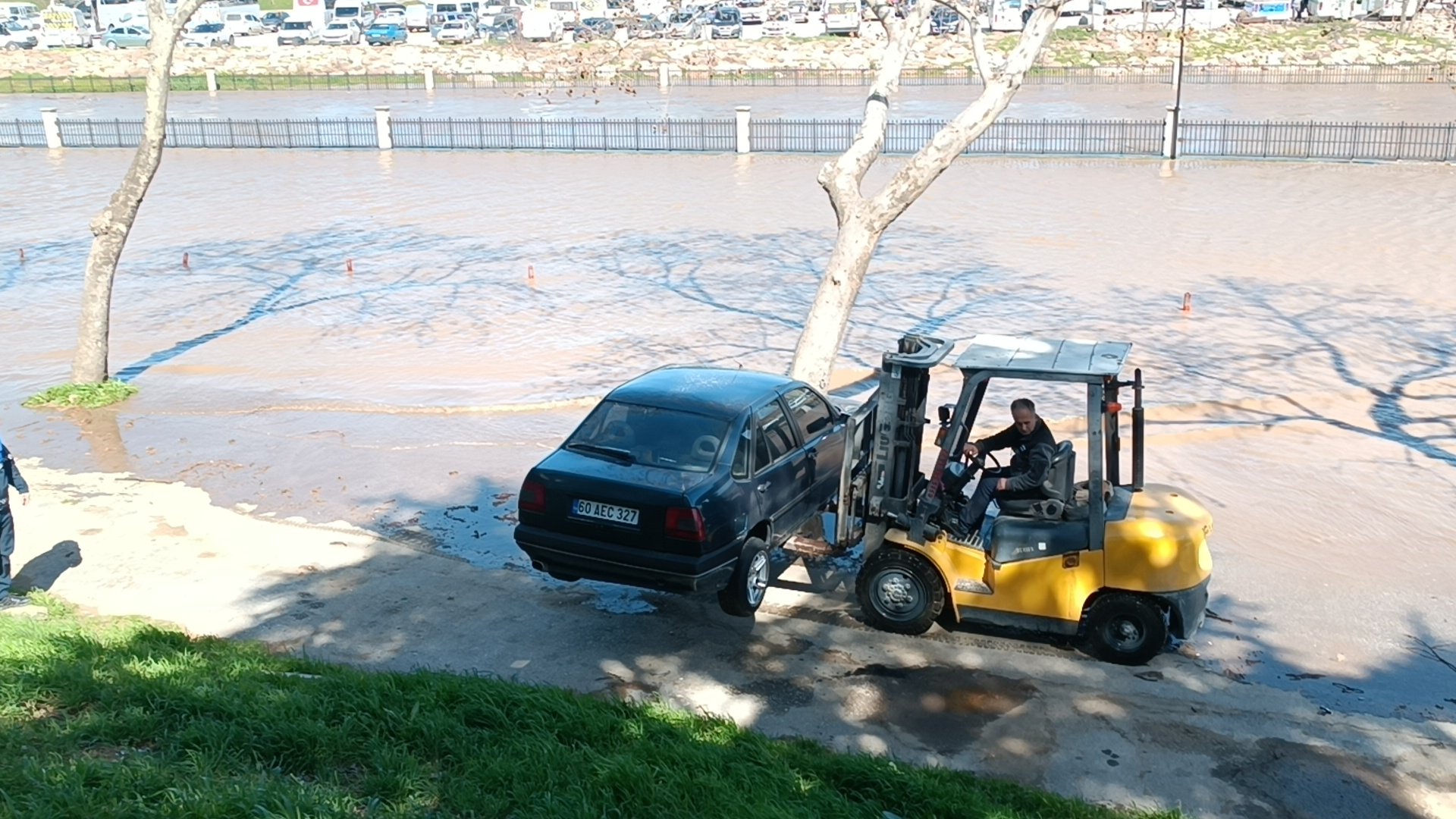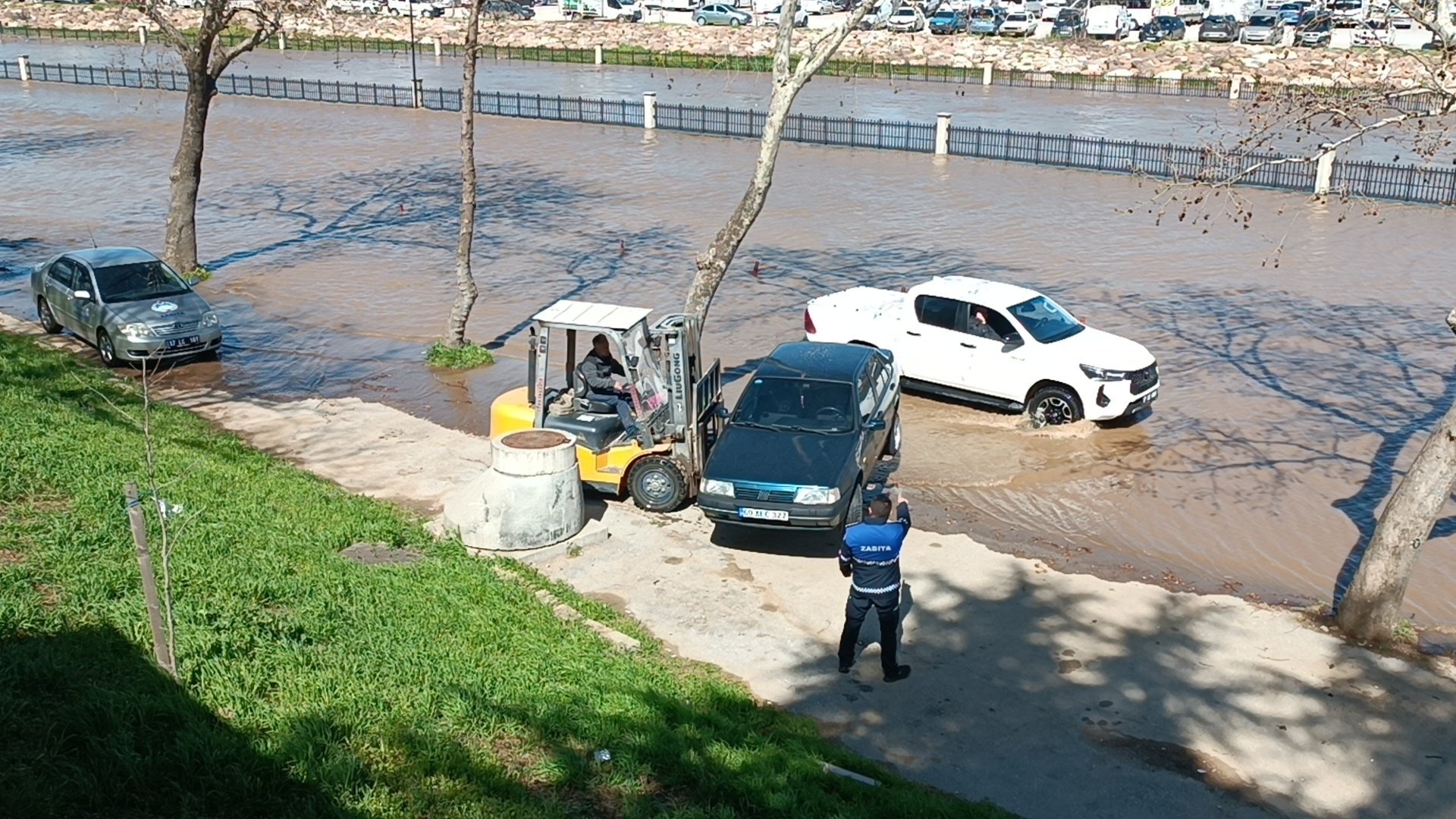 Korkulan Oldu, Kocabaş Taştı! Araçlar Forkliftlerle Kurtarıldı!