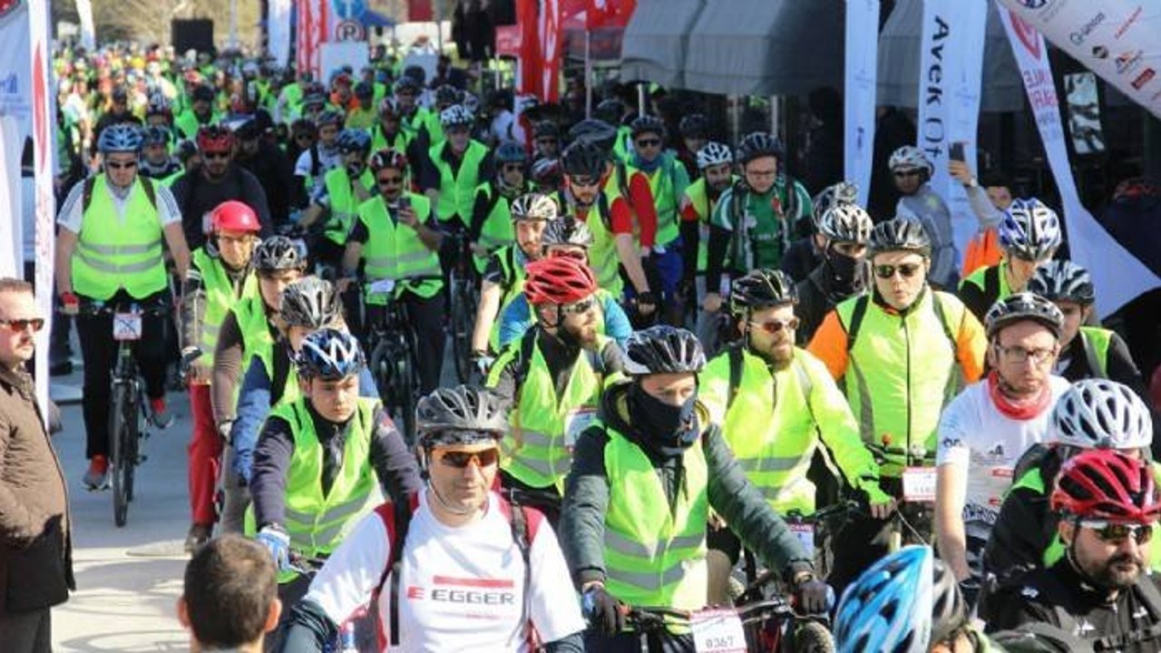 Türkiye’nin çeşitli illerinden gelen 3 bine yakın bisikletçi başlangıç noktasında yerini aldı.