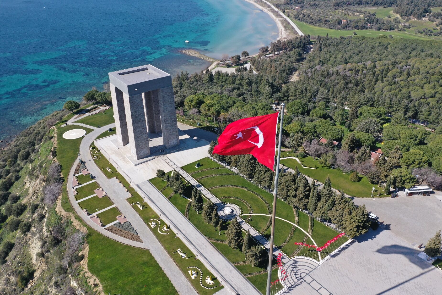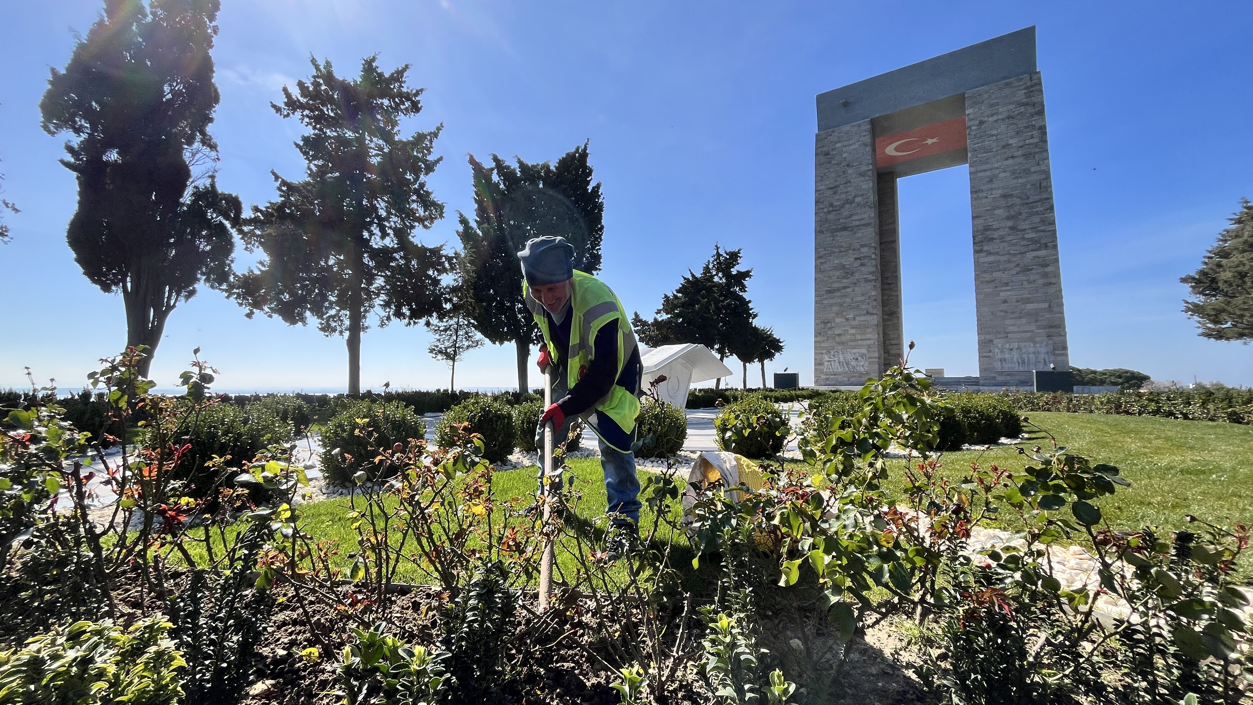 Hisarlık Tepe'de yer alan yaklaşık 42 metre yüksekliğindeki Şehitler Abidesi'nin çevresine, Türk Bahçesi ve temsili şehitliklere, Türk bayrağını simgeleyen kırmızı ve beyaz renkte 80 bin lale soğanı ekildi.