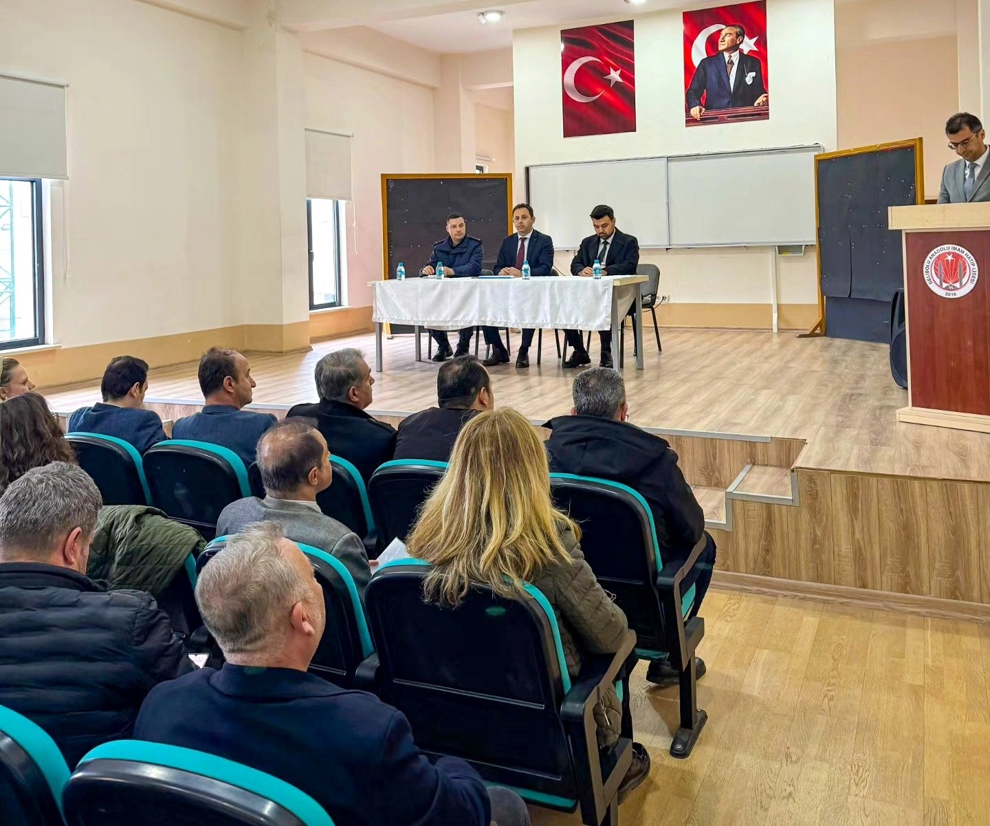 İlçe Milli Eğitim Müdürü Kadir Aydın başkanlığında, Gelibolu Anadolu İmam Hatip Lisesi Konferans Salonu'nda gerçekleştirilen toplantıya İlçe Sağlık Müdürü Uzm. Dr. Okan Deniz, İlçe Emniyet Müdürlüğü ve İlçe Jandarma Komutanlığı yetkilileri ile okul ve kurum müdürleri, psikolojik danışman ve rehber öğretmenler katıldı.