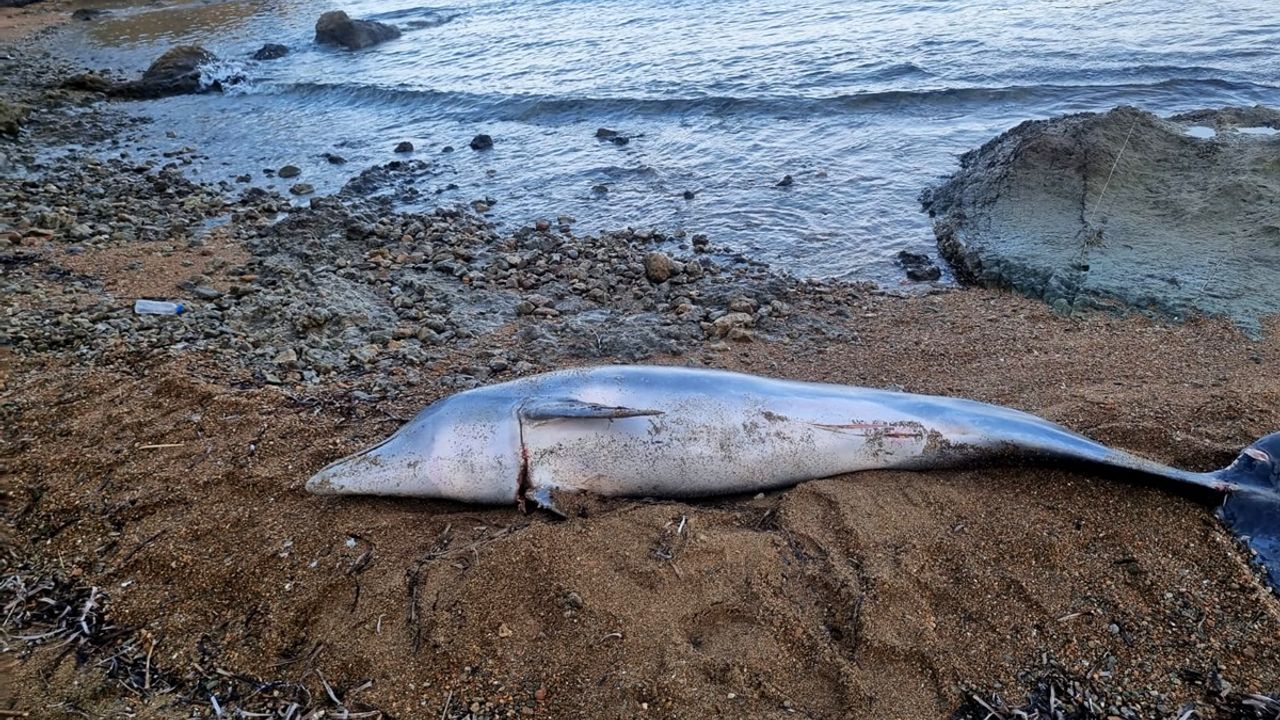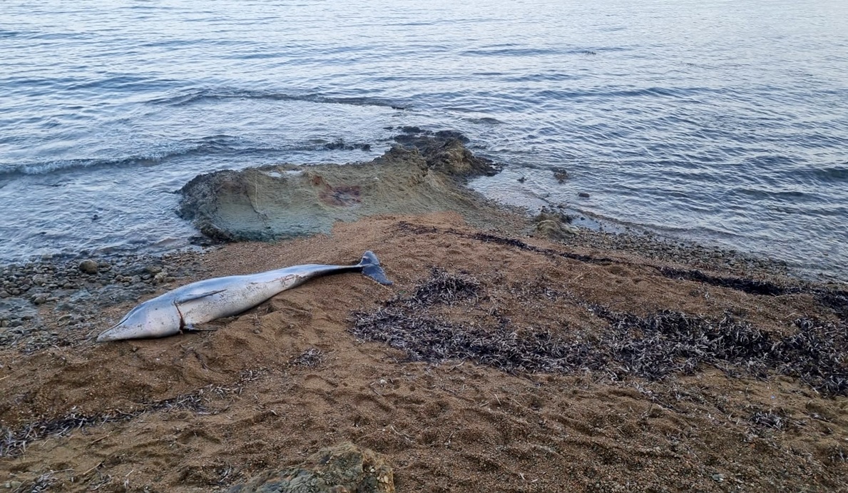 Asker Çeşme yakınlarında sabah yürüyüşü yapan bir vatandaşın fark ettiği yunusun boynunda yaralanma izleri olduğu bildirildi.