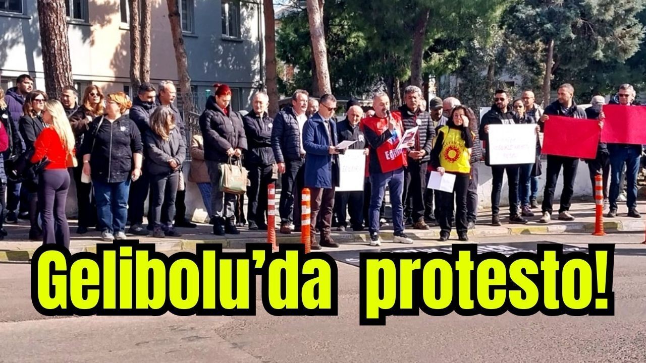Gelibolu ilçesindeki, Eğitim-İş ve Eğitim-Sen sendikalarına bağlı öğretmenler, İlçe Milli Eğitim Müdürlüğü binası önünde bir araya geldi.