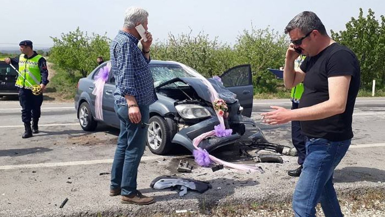 Kaza, saat 15.00 sıralarında Ezine-Bayramiç karayolunun Yağcılaraltı mevkisinde meydana geldi. Dün akşam Bayramiç ilçesinde kına gecesi olan ve Batman'da uzman çavuş olarak görev yapan damat İbrahim Öz, bu akşam memleketi Ayvacık ilçesindeki düğün için gelin Ceren Yılmaz’ı almak üzere gelin aracı ile Bayramiç'e doğru yola çıktı. Yanında sağdıç arkadaşı Hüseyin Erdem de bulunan Öz, kullandığı 17 GL 135 plakalı gelin aracı ile Bayramiç’e 5 kilometre kala tali yoldan önüne çıktığı iddia edilen Adnan Saygın (55) yönetimindeki 17 KK 365 plakalı hafif ticari araca çarptı. Kazada her iki araçta da maddi hasar oluşurken yaranan damat ve sağdıç Ezine ve Bayramiç devlet hastanelerine kaldırıldı. Damat Öz'ün sol bacağının kırık olduğu belirtilirken, kazayı duyup gelen yakınları gözyaşı döktü.