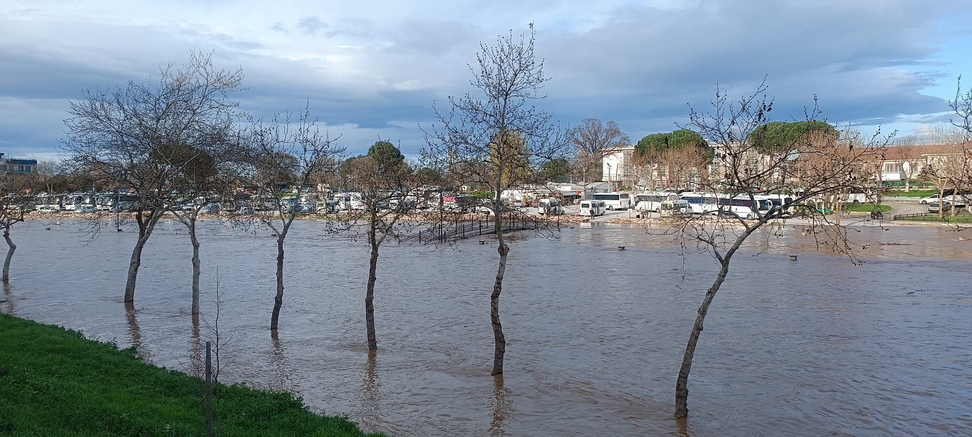 Biga’da etkisini sürdüren şiddetli yağışlar hayatı durma noktasına getirdi. Bölgenin en önemli su kaynaklarından biri olan Kocabaş Çayı'nın debisi, aşırı yağışlara dayanamayarak yükseldi. Çayın taşmasıyla birlikte sular sadece tarım arazileriyle sınırlı kalmadı; kent merkezi de yükselen sulardan olumsuz etkilendi ve cadde ile sokaklar sular altında kaldı. Taşkının boyutu ulaşım ağında ciddi aksamalara yol açtı. Birçok yol, su birikintileri ve güvenlik riski nedeniyle geçici olarak trafiğe kapatıldı.