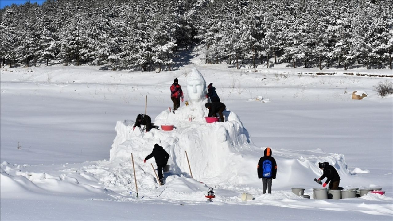 KAÜ ile Atatürk Üniversitesinden akademisyen ve öğrencilerden oluşan 6 kişilik ekip tarafından, taşınan yaklaşık 200 kamyon karla 2 bin 600 rakımlı Kızılçubuk mevkisinde kardan heykellerin yapılmasına başlandı.