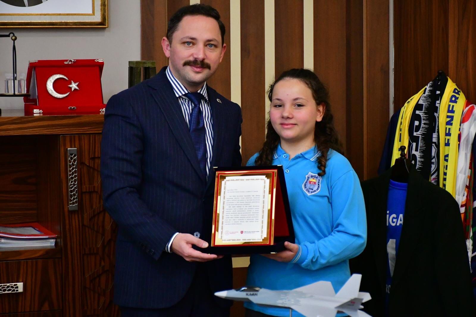 Biga Kaymakamı Ercan Kayabaşı, ortaokullar arasında düzenlenen önemli bir yarışmada derece elde eden öğrencileri makamında kabul ederek başarılarını kutladı.