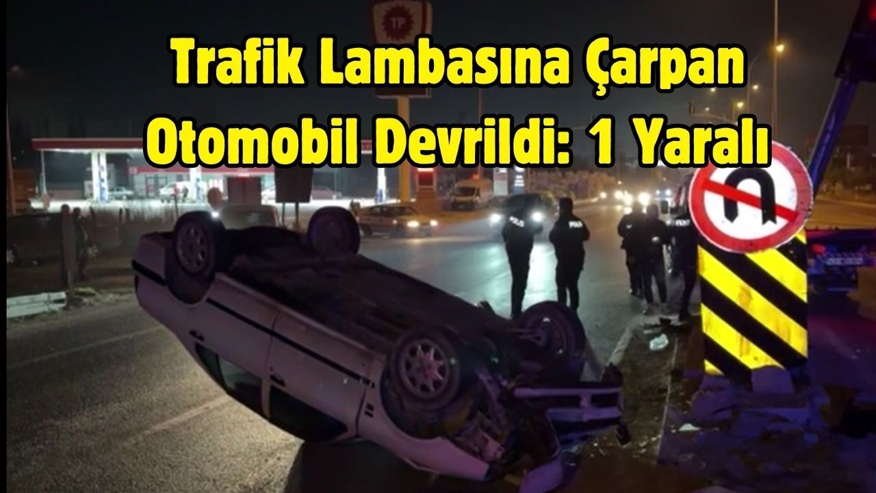 Kütahya’da trafik lambasına çarparak yola devrilen otomobilin sürücüsü yaralandı.
